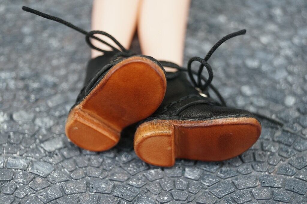 1/6ドールやリカちゃん人形にぴったりな本革ショートブーツです。(着用モデルの足サイズは28mm)