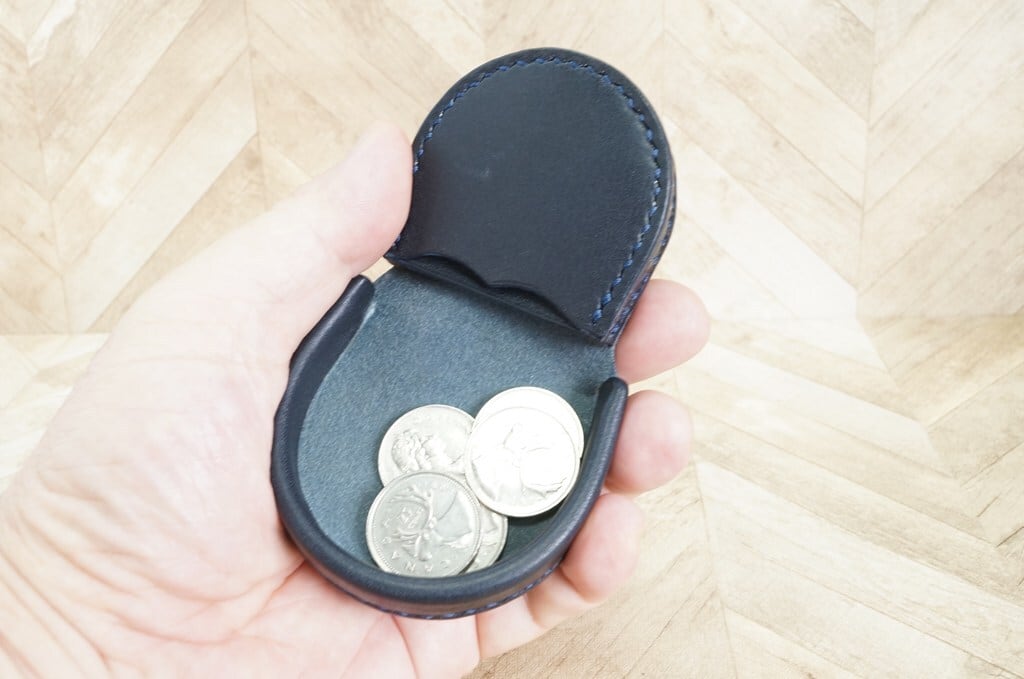 神奈川県・秦野市の自宅工房からお届けする、BearValley creative work shopの「ちょっと小ぶりな馬蹄型コインケース」。