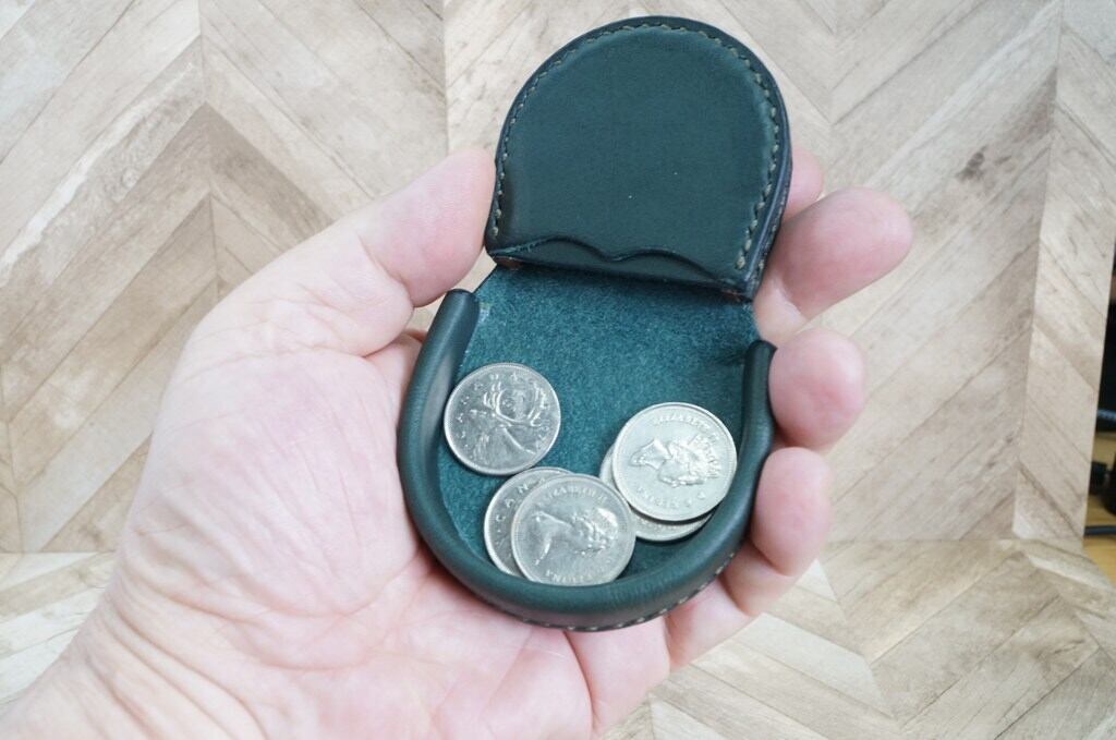 神奈川県・秦野市の自宅工房からお届けする、BearValley creative work shopの「ちょっと小ぶりな馬蹄型コインケース」。