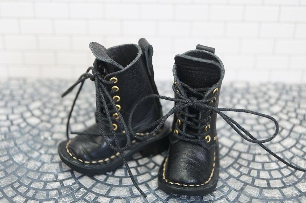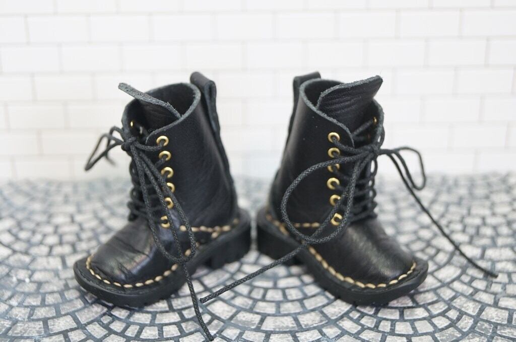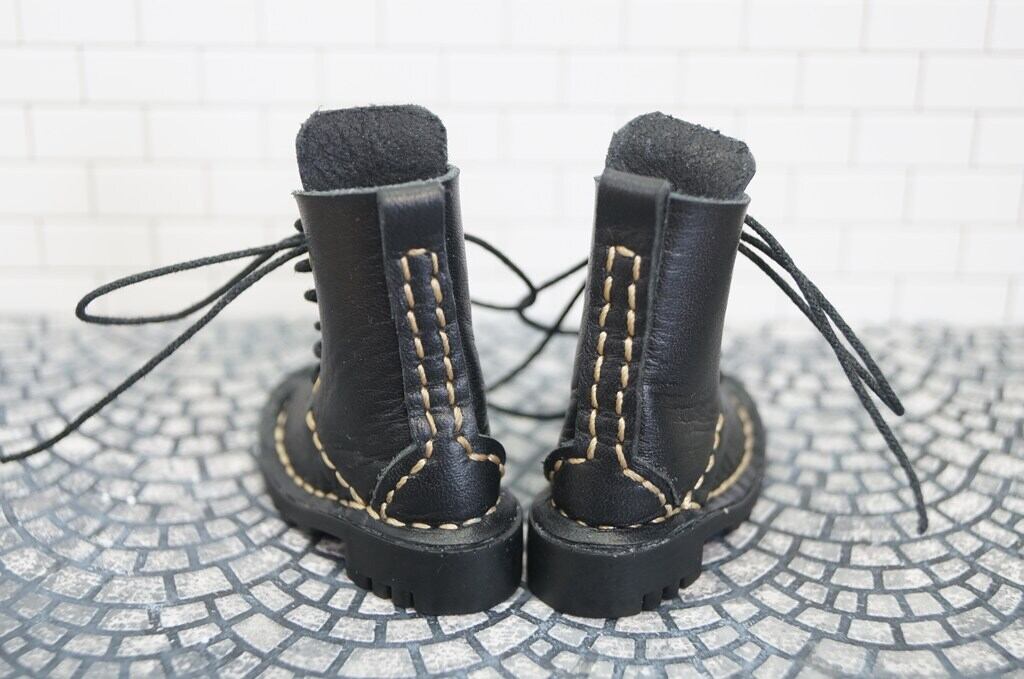 本革:ドールシューズ/セミロングブーツ ブラック/オビツ30ジャストフィット/ブロックパターン靴底