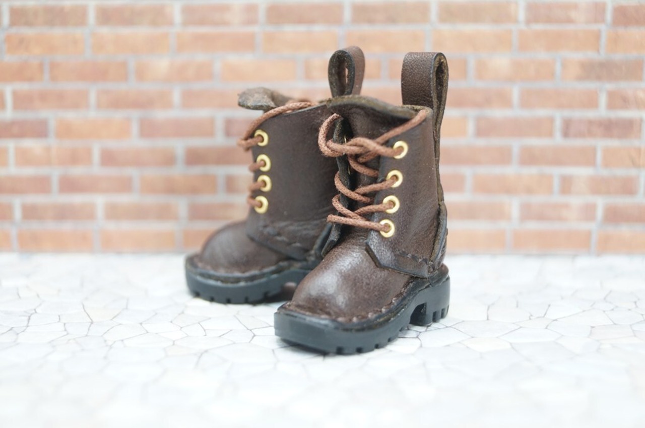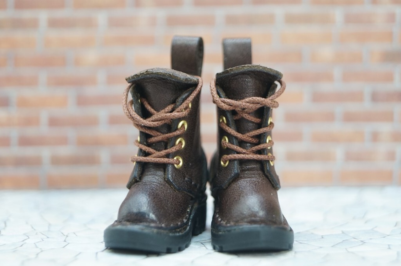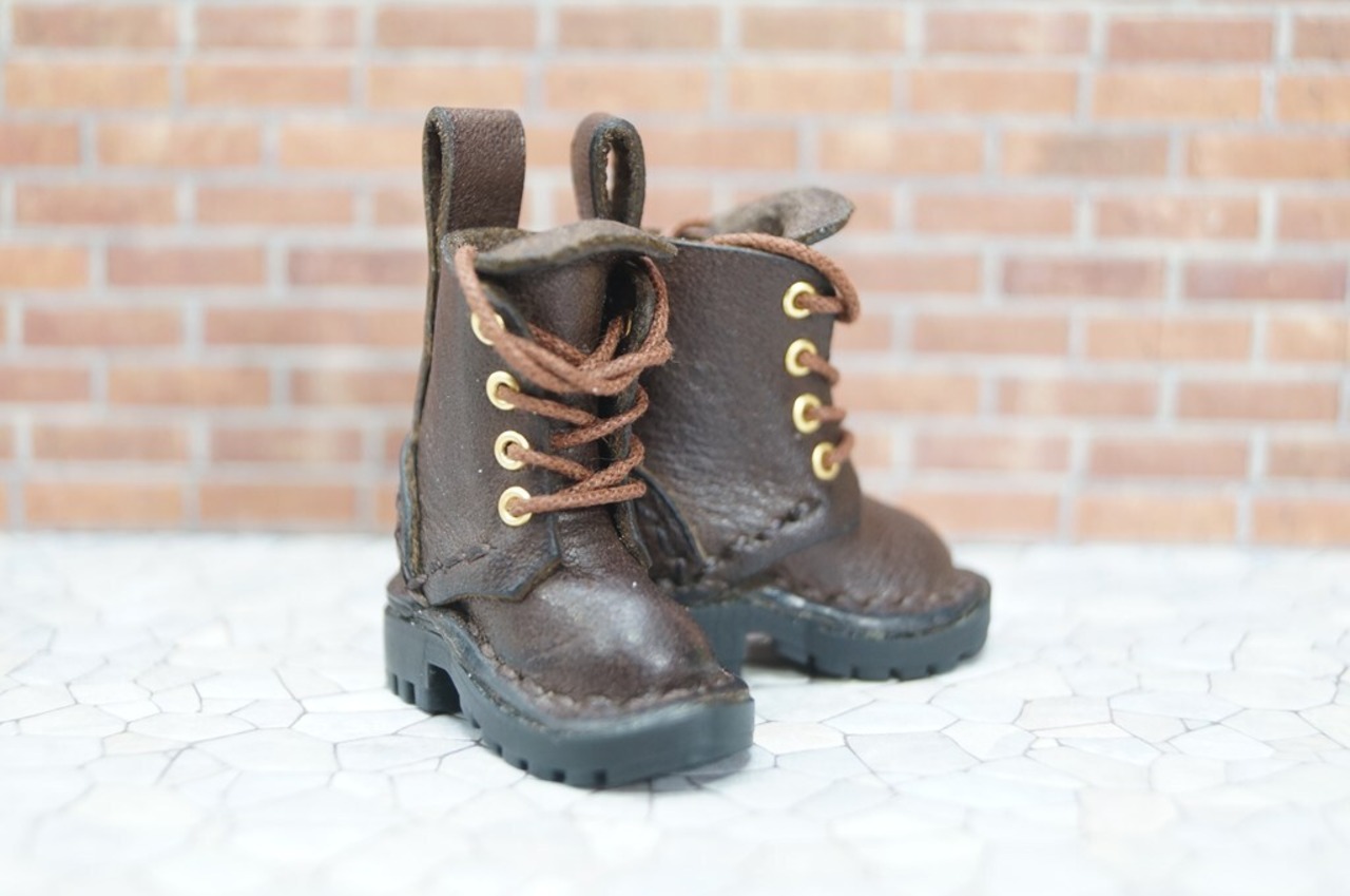 本革:1/6ドールシューズ/セミロングブーツ ダークブラウン/オビツ24・ブライス・リカちゃん/ブロックパターン靴底