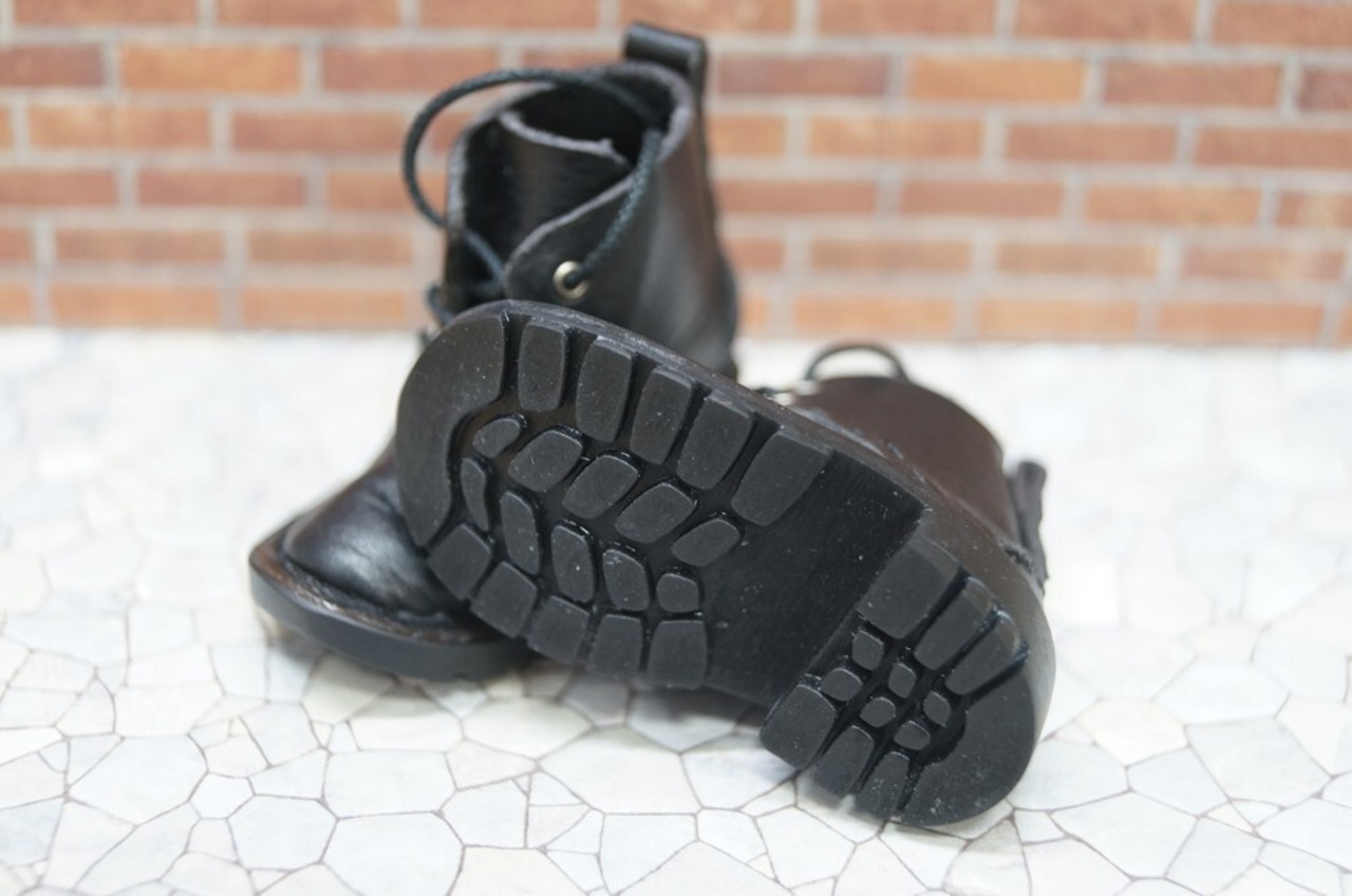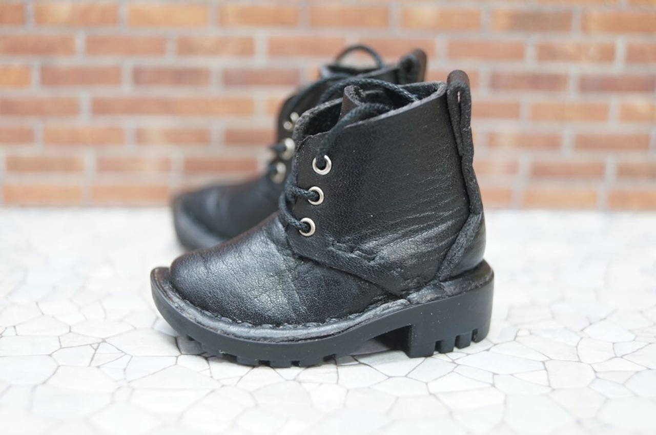 本革:ドールシューズ/ショートブーツ ブラック/オビツ30ジャストフィット/ブロックパターン靴底