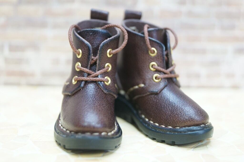 本革:ドールシューズ/ショートブーツ ディープブラウン/オビツ30ジャストフィット/ブロックパターン靴底