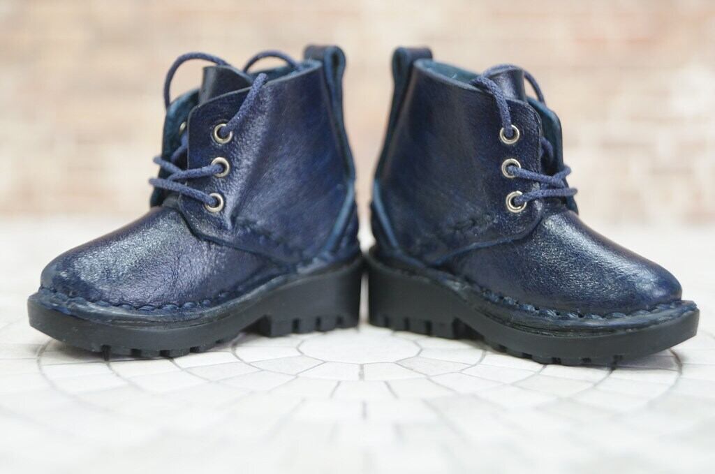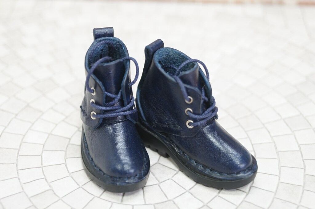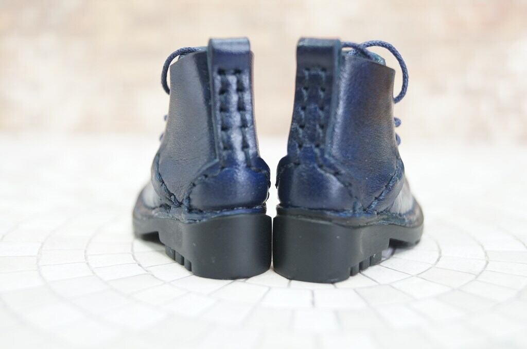 本革:ドールシューズ/ショートブーツ ネイビーブルー/オビツ30ジャストフィット/ブロックパターン靴底