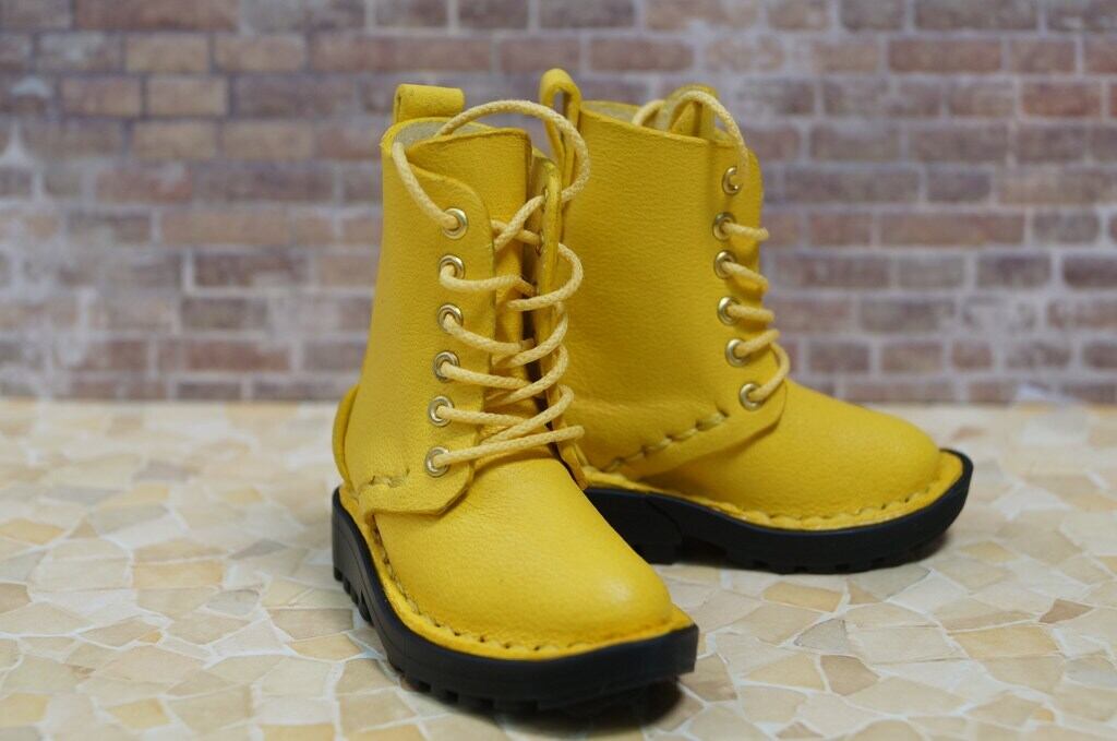 本革:ドールシューズ/セミロングブーツ パステルイエロー/オビツ30ジャストフィット/ブロックパターン靴底