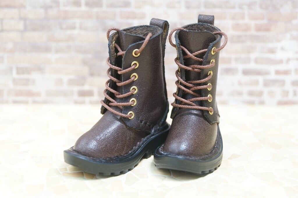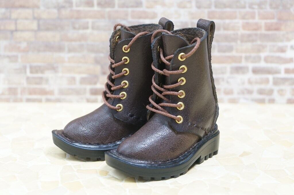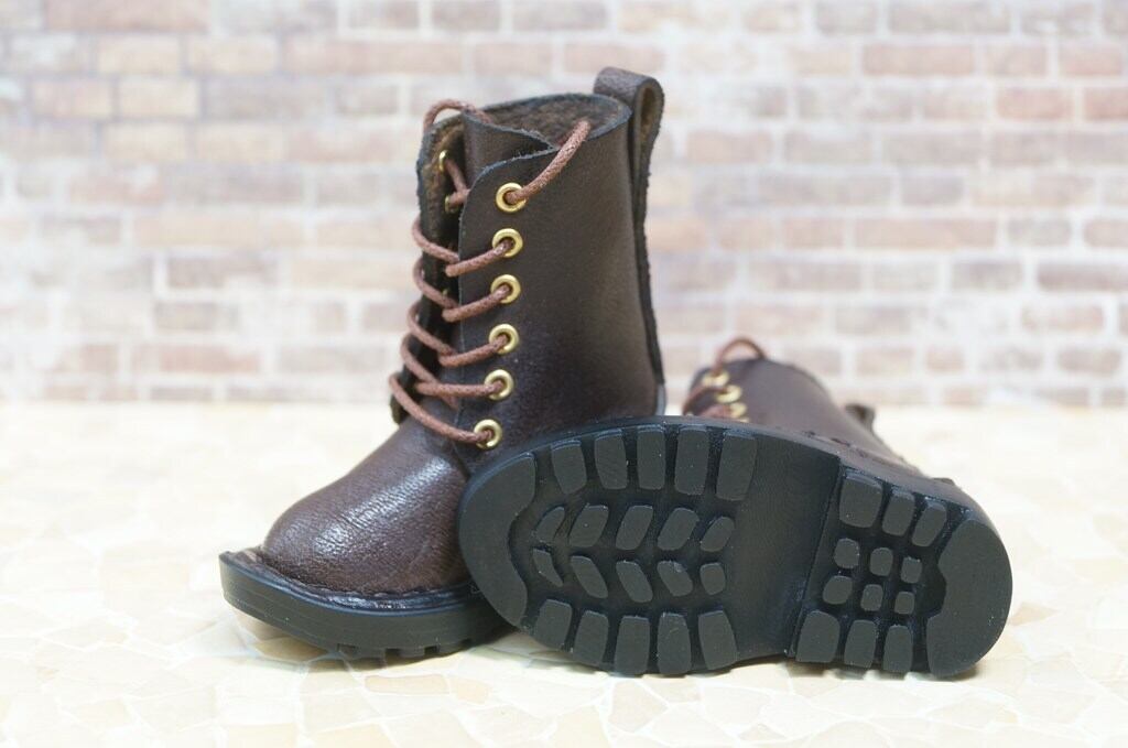 本革:ドールシューズ/セミロングブーツ/ディープブラウン/オビツ30ジャストフィット/ブロックパターン靴底