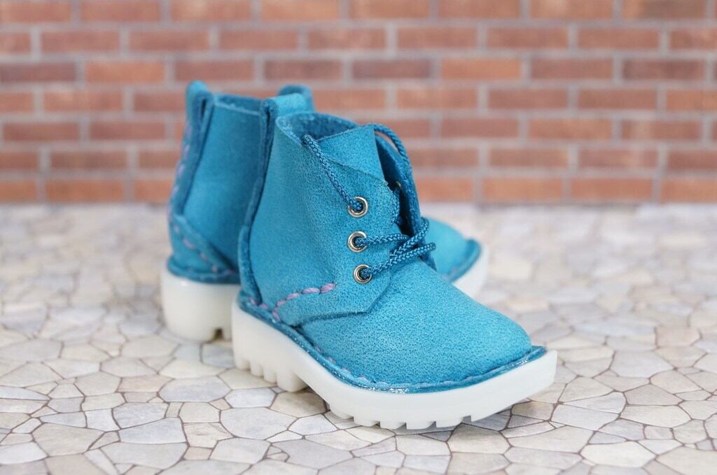 本革:ドールシューズ/ショートブーツ/スカイブルー/オビツ30ジャストフィット/ブロックパターン靴底