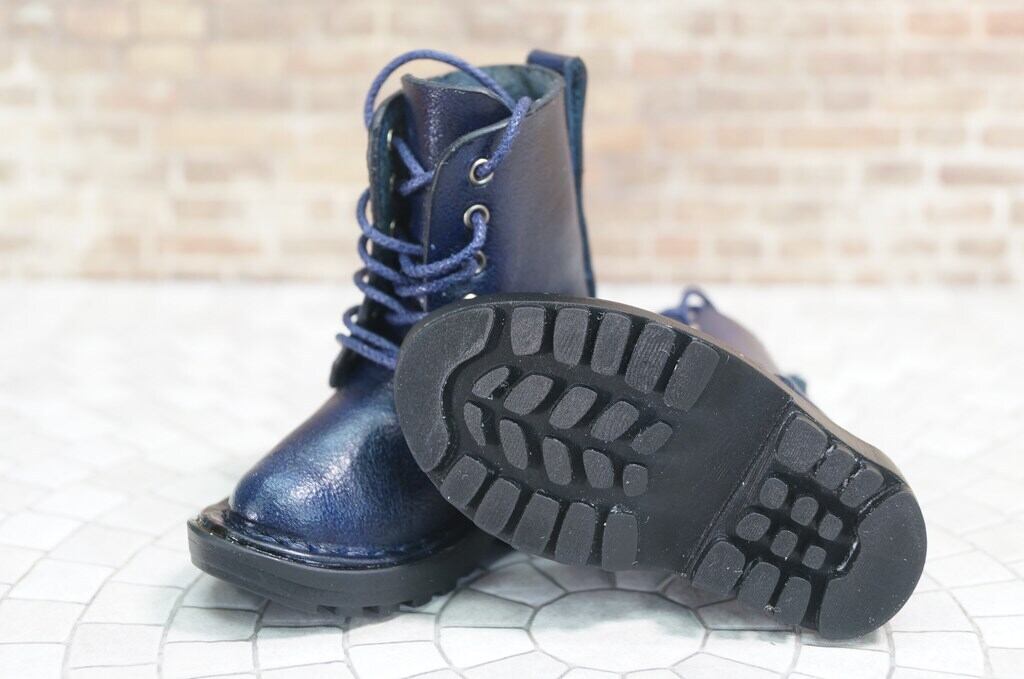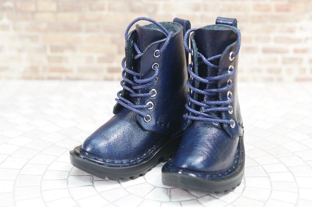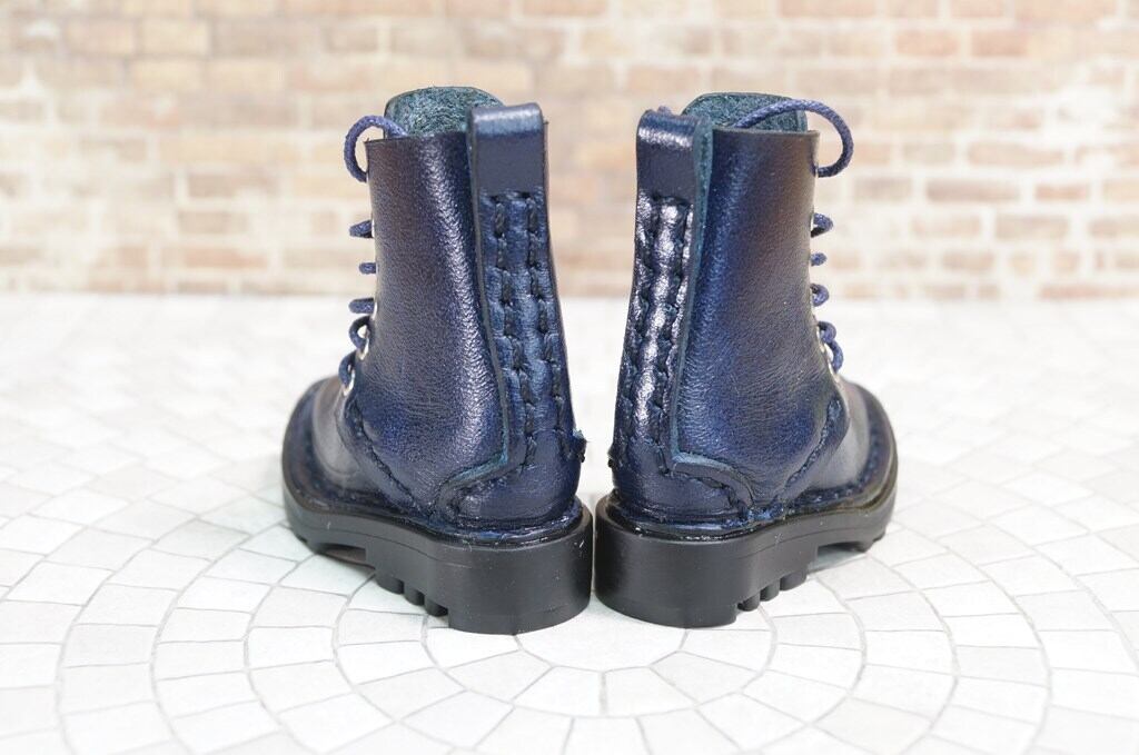 本革:ドールシューズ/セミロングブーツ/ネイビーブルー/オビツ30ジャストフィット/ブロックパターン靴底