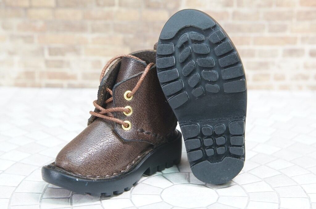 本革:ドールシューズ/ショートブーツ/ディープブラウン/オビツ30ジャストフィット/ブロックパターン靴底