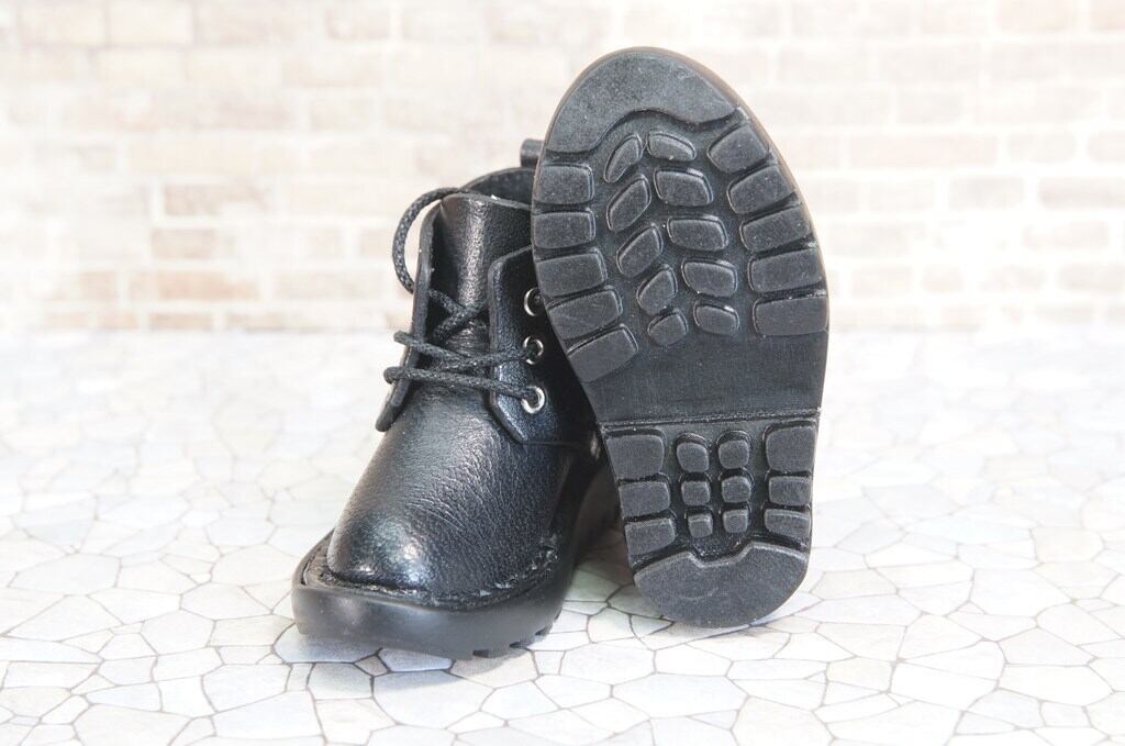 本革:ドールシューズ/ショートブーツ/ブラック/オビツ30ジャストフィット/ブロックパターン靴底