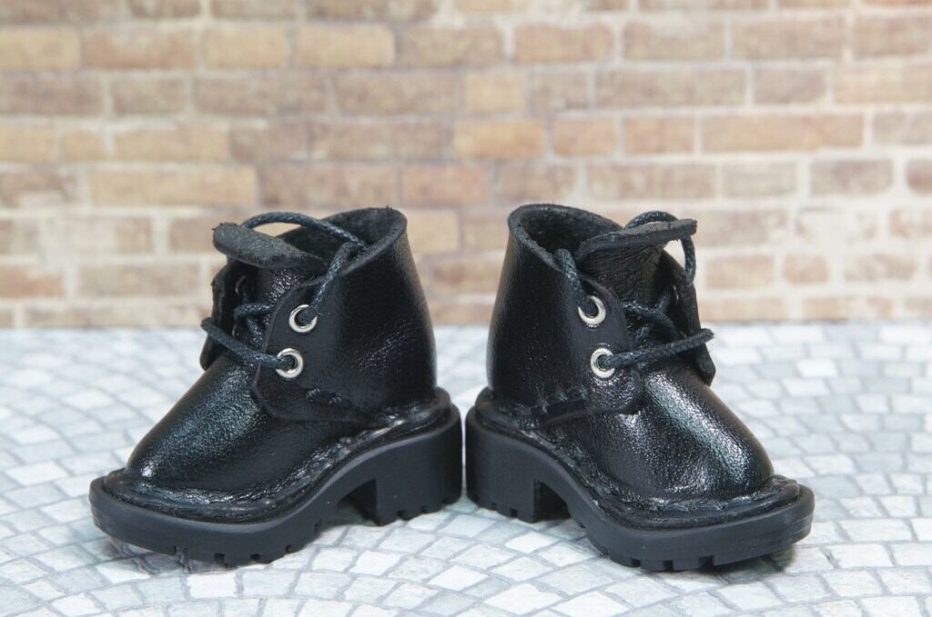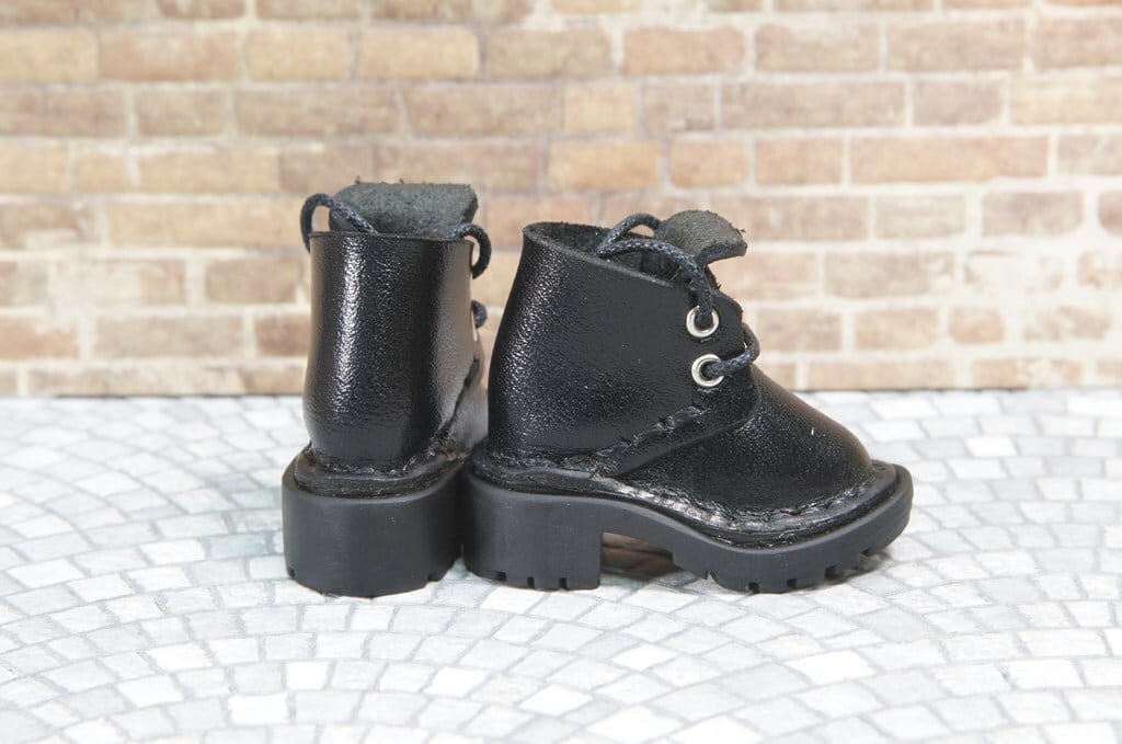 本革:1/6ドールシューズ/ショートブーツ/ブラック/オビツ24・ブライス・リカちゃん/ブロックパターン靴底