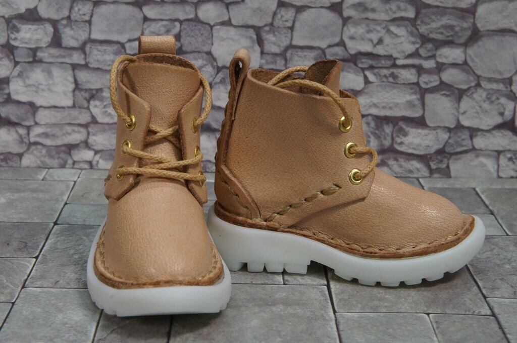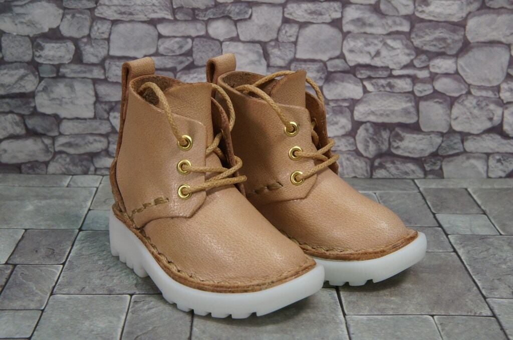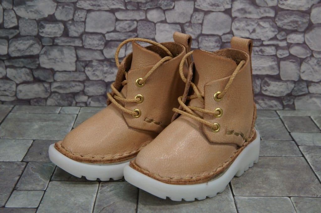 本革:ドールシューズ/ショートブーツ/生成り/オビツ30ジャストフィット/ブロックパターン靴底