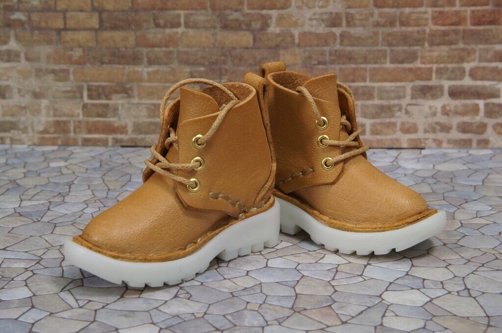本革:ドールシューズ/ショートブーツ/ベージュ/オビツ30ジャストフィット/ブロックパターン靴底