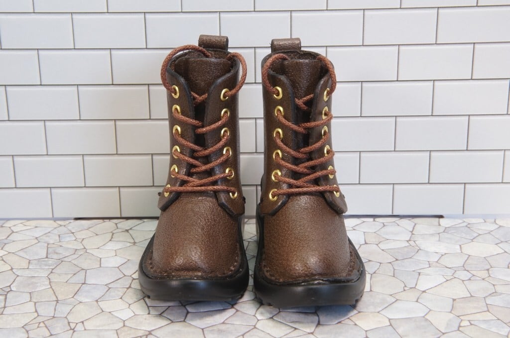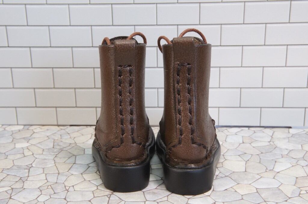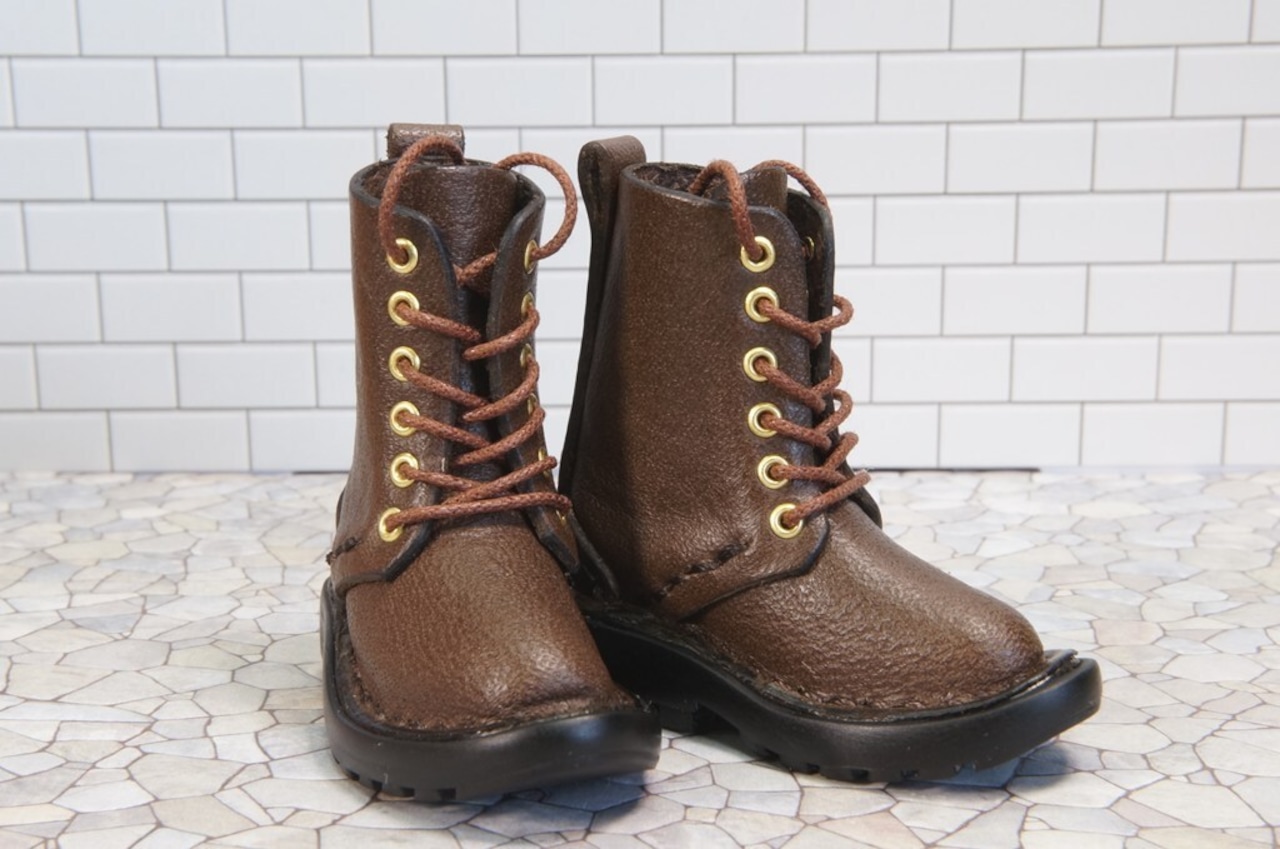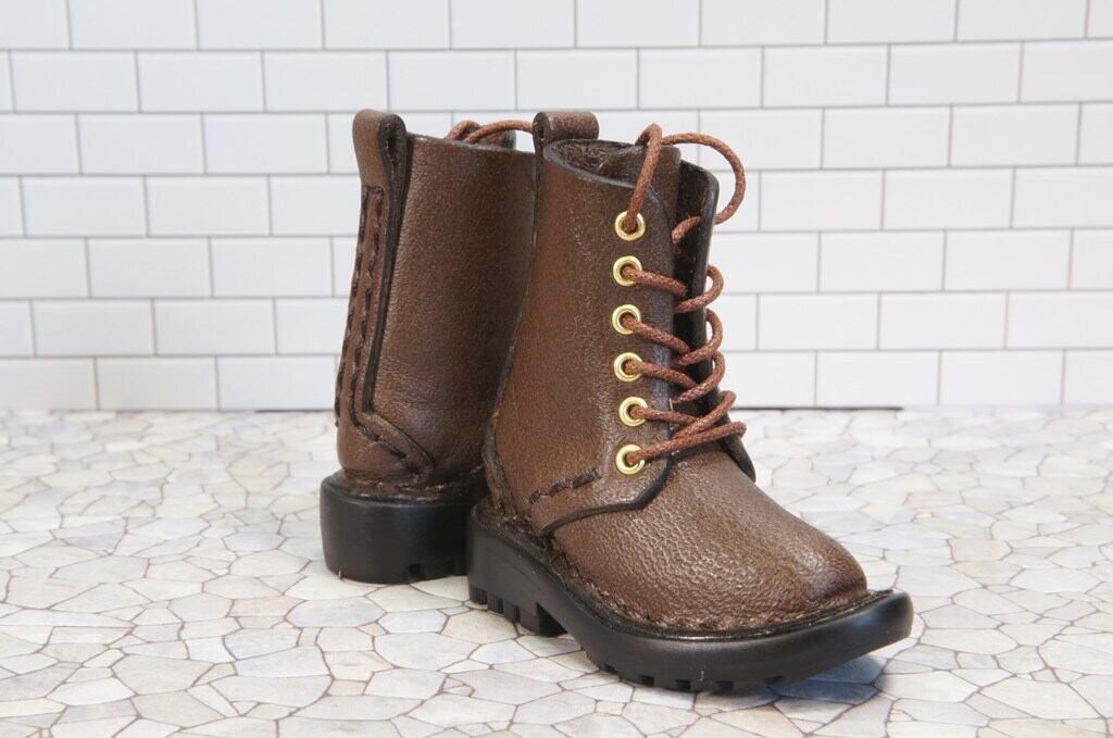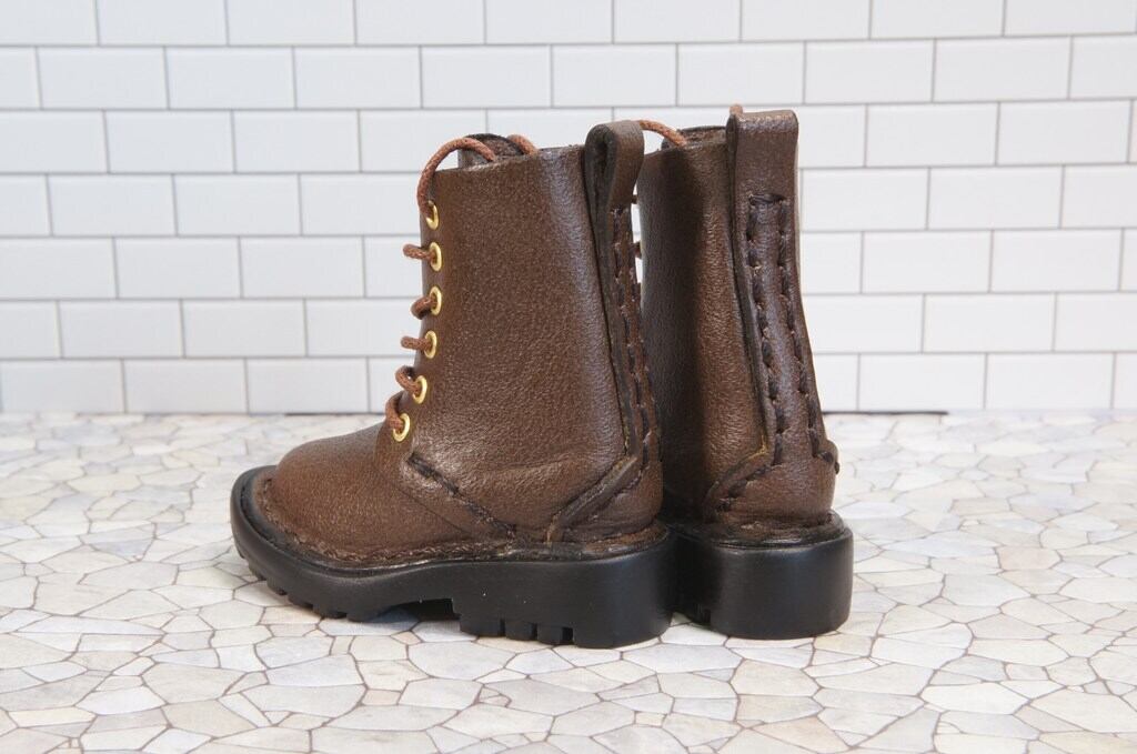 本革:ドールシューズ/セミロングブーツ/ブラウン/オビツ30ジャストフィット/ブロックパターン靴底