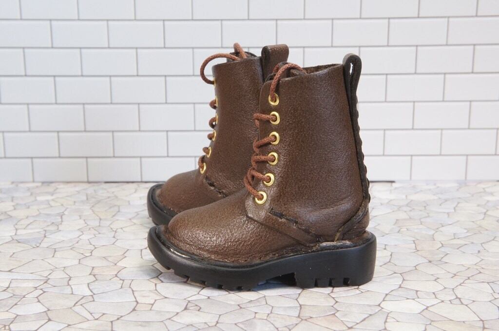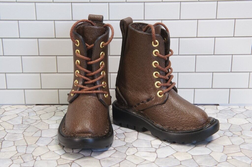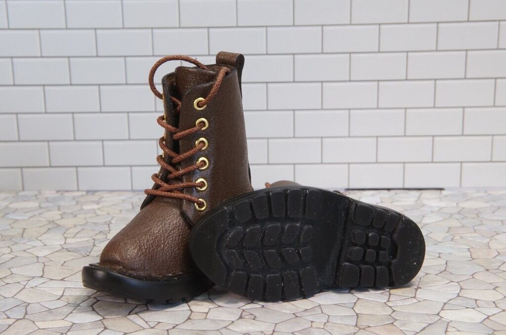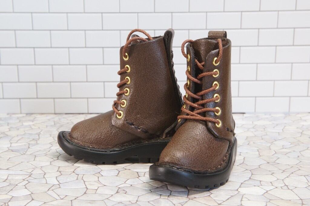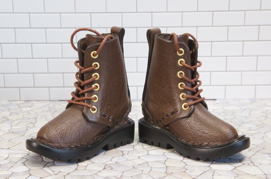 本革:ドールシューズ/セミロングブーツ/ブラウン/オビツ30ジャストフィット/ブロックパターン靴底
