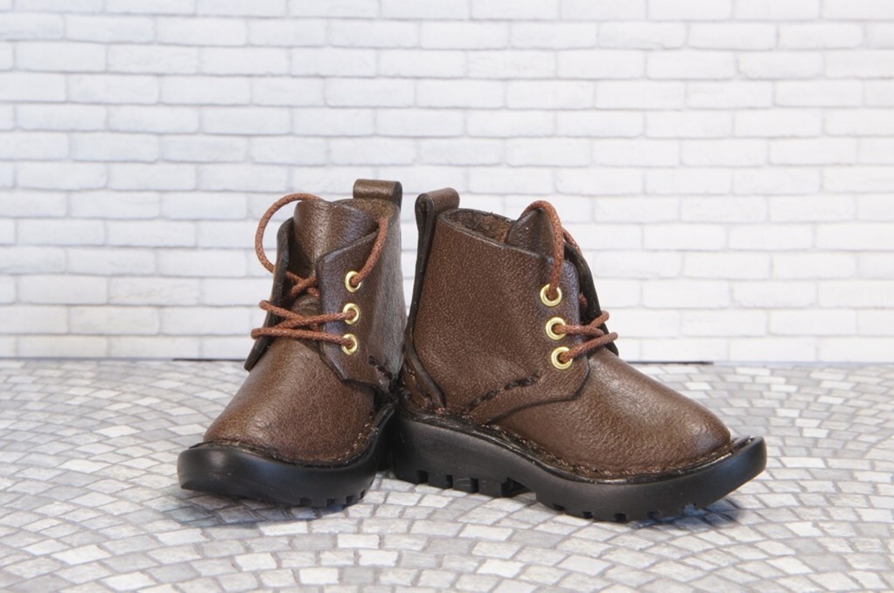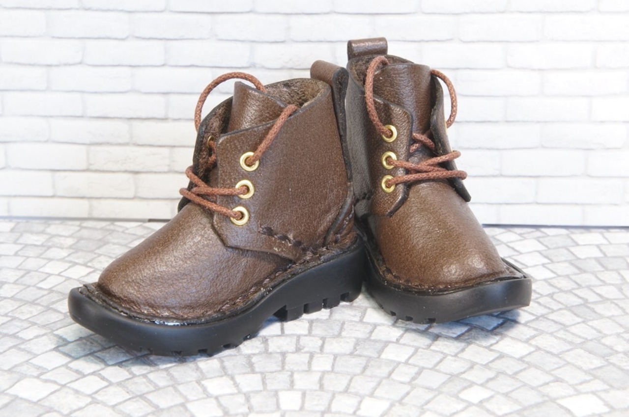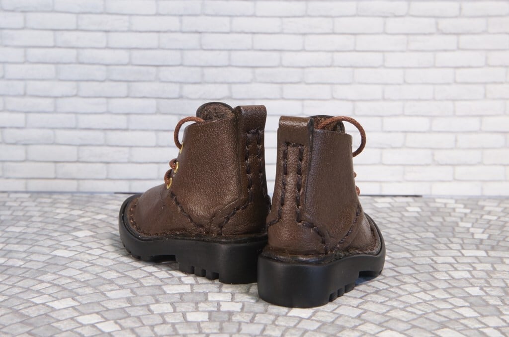 本革:ドールシューズ/ショートブーツ/ブラウン/オビツ30ジャストフィット/ブロックパターン靴底