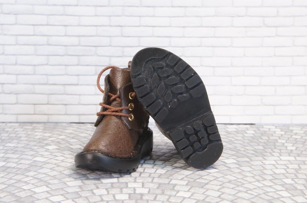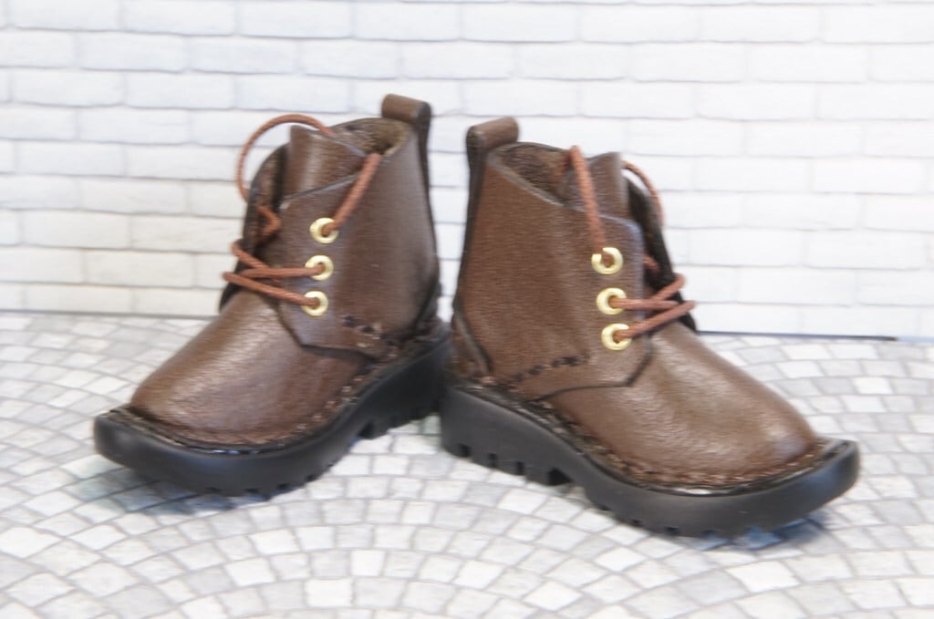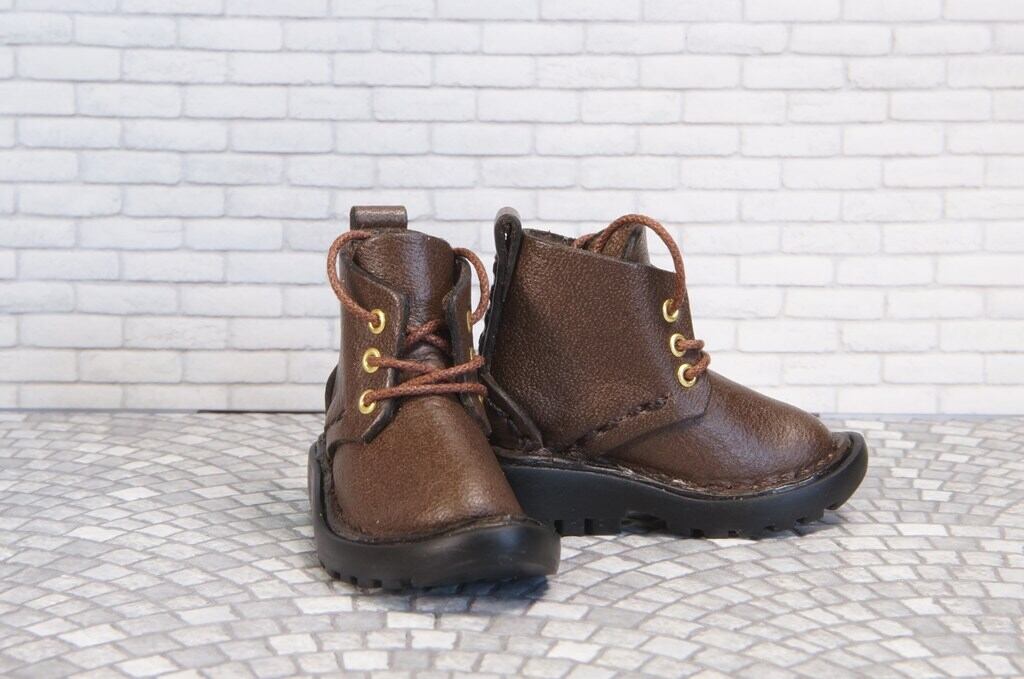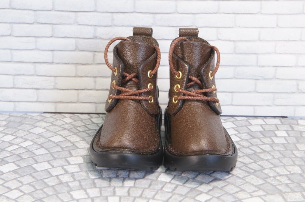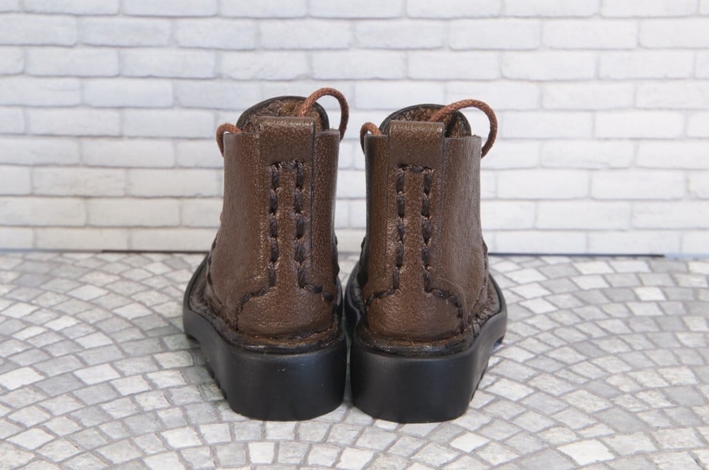 本革:ドールシューズ/ショートブーツ/ブラウン/オビツ30ジャストフィット/ブロックパターン靴底