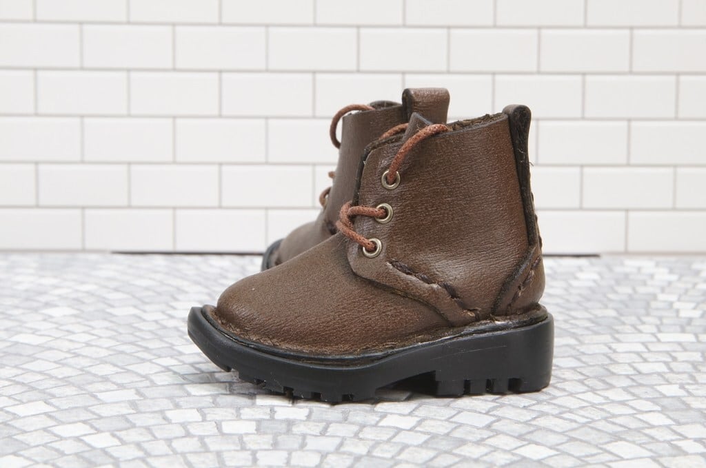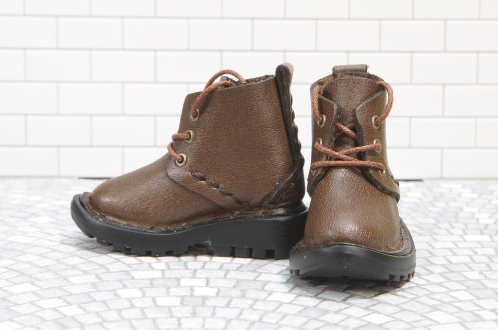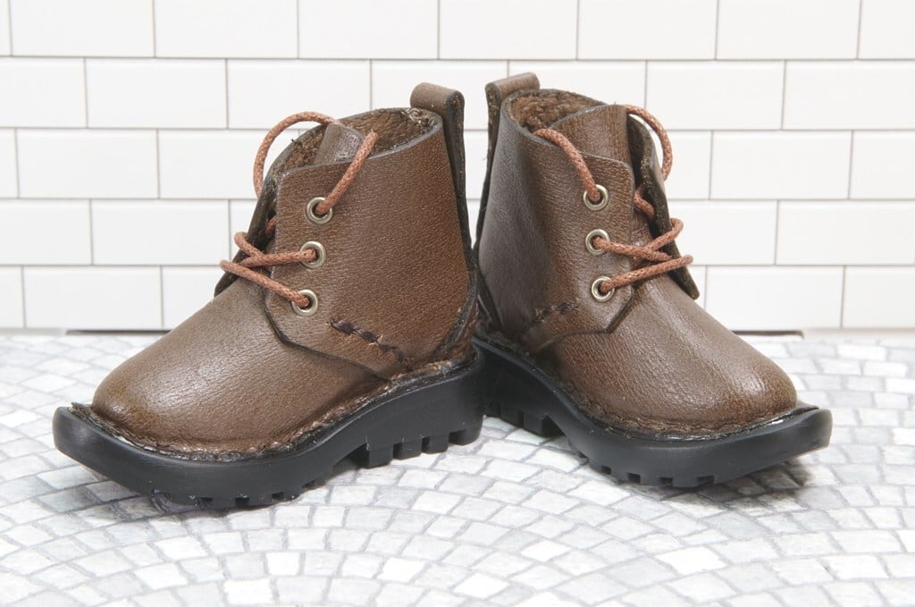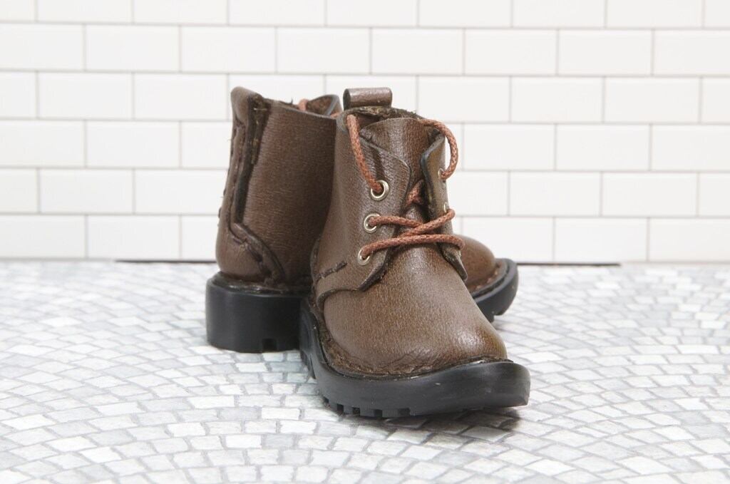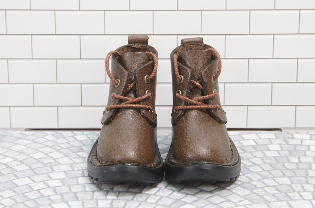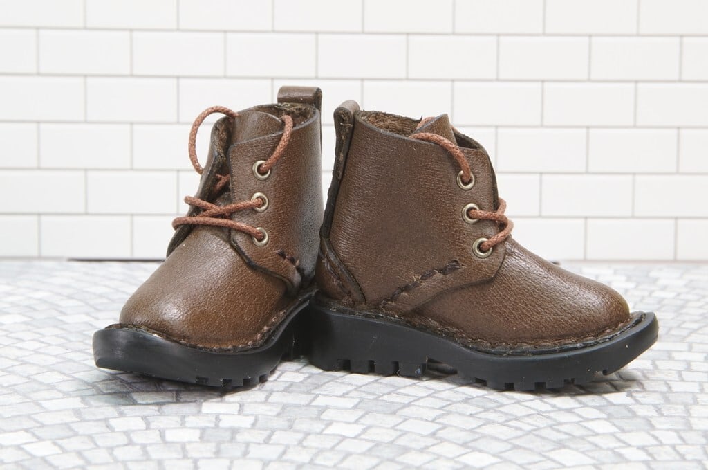 本革:ドールシューズ/ショートブーツ/ブラウン/オビツ30ジャストフィット/ブロックパターン靴底