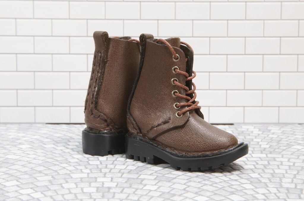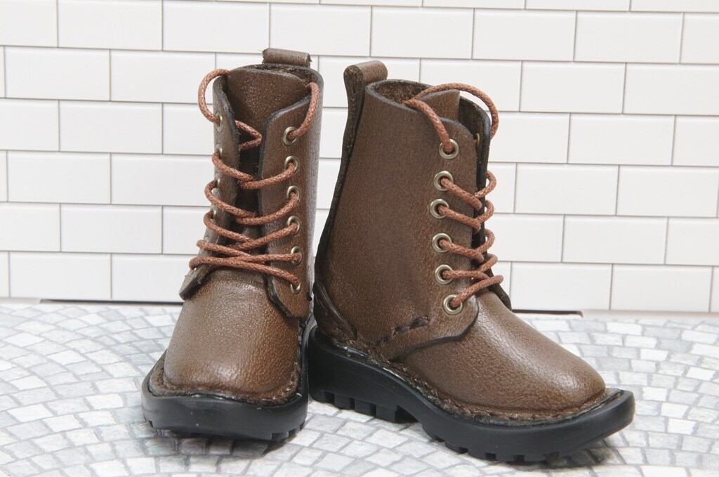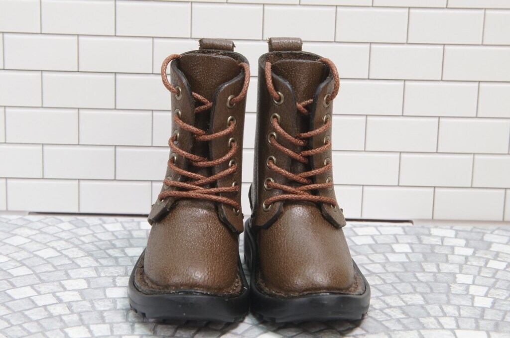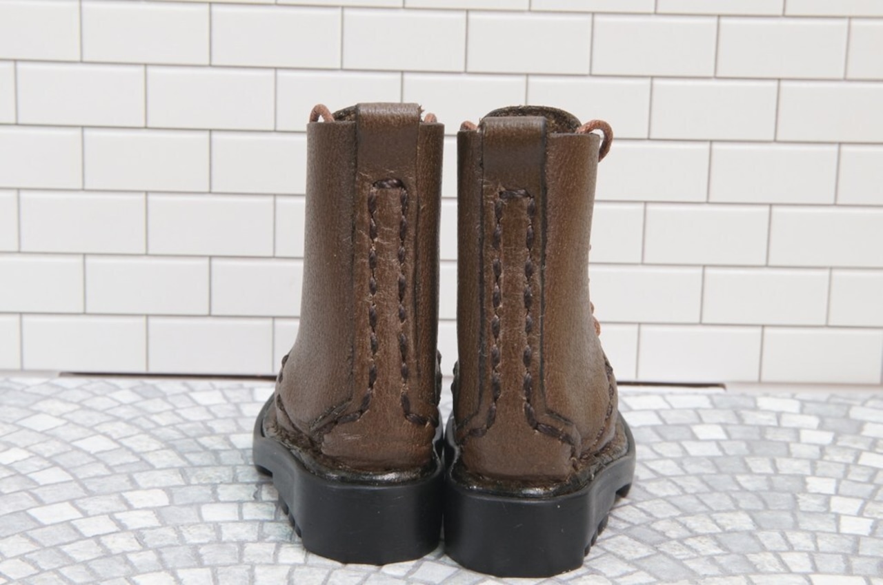 本革:ドールシューズ/セミロングブーツ/ブラウン/オビツ30ジャストフィット/ブロックパターン靴底