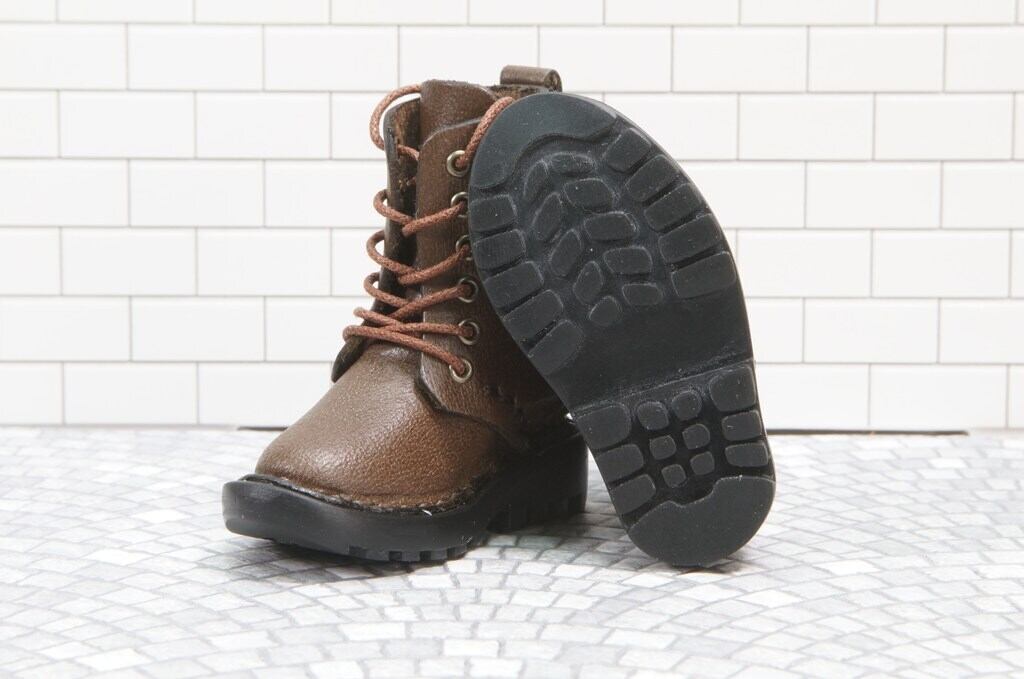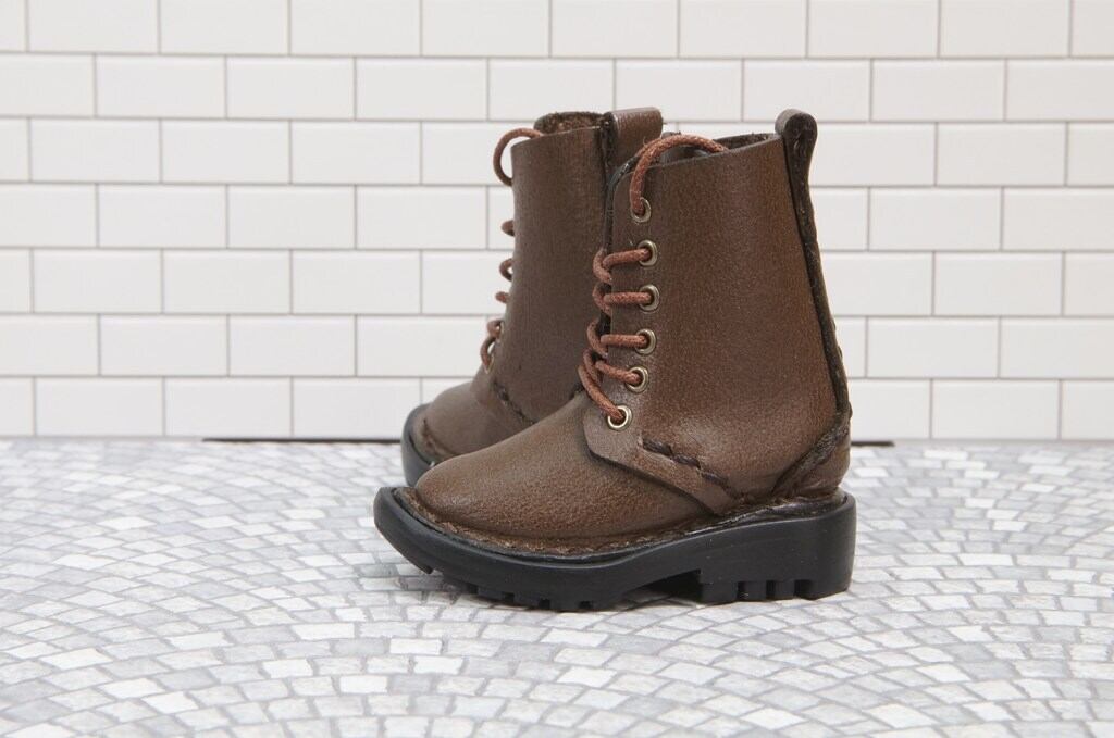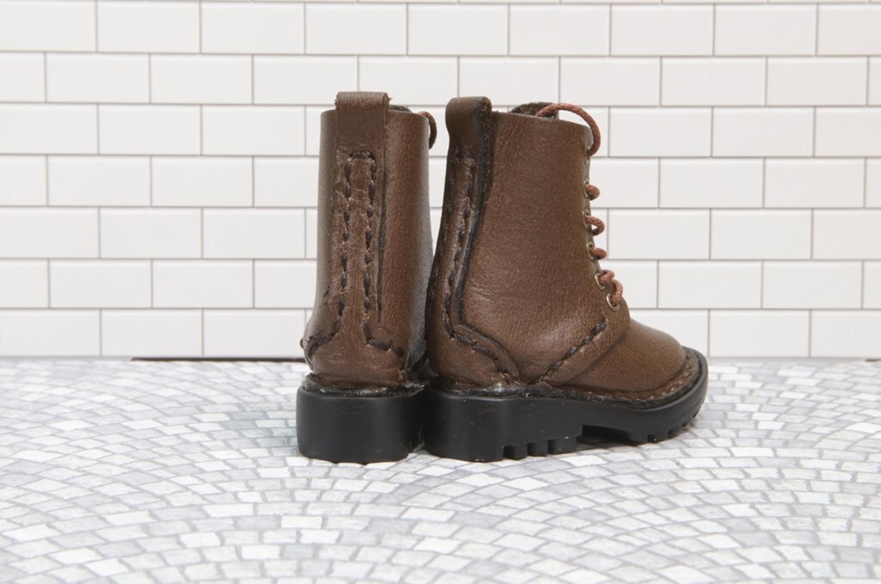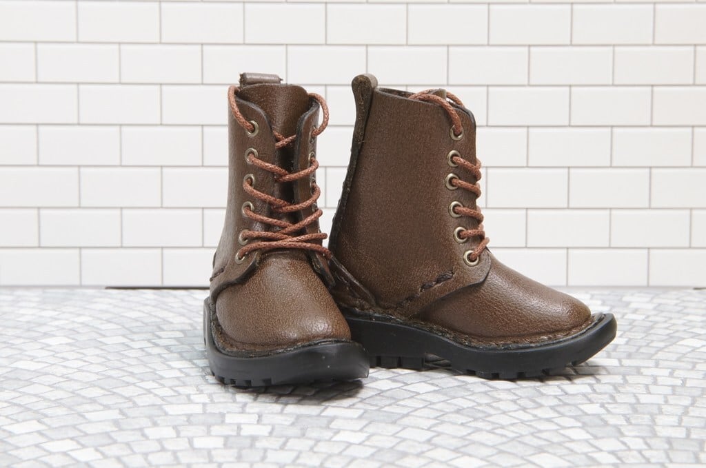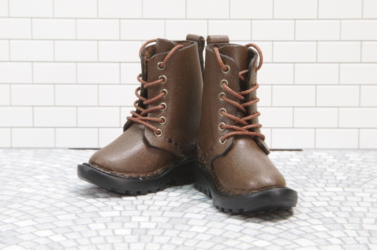 本革:ドールシューズ/セミロングブーツ/ブラウン/オビツ30ジャストフィット/ブロックパターン靴底