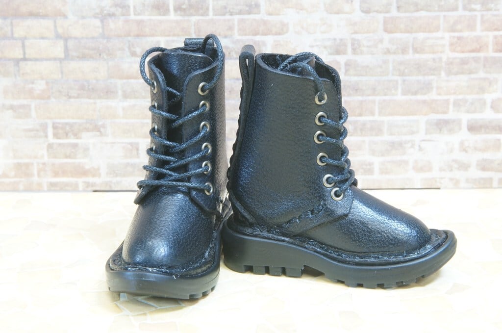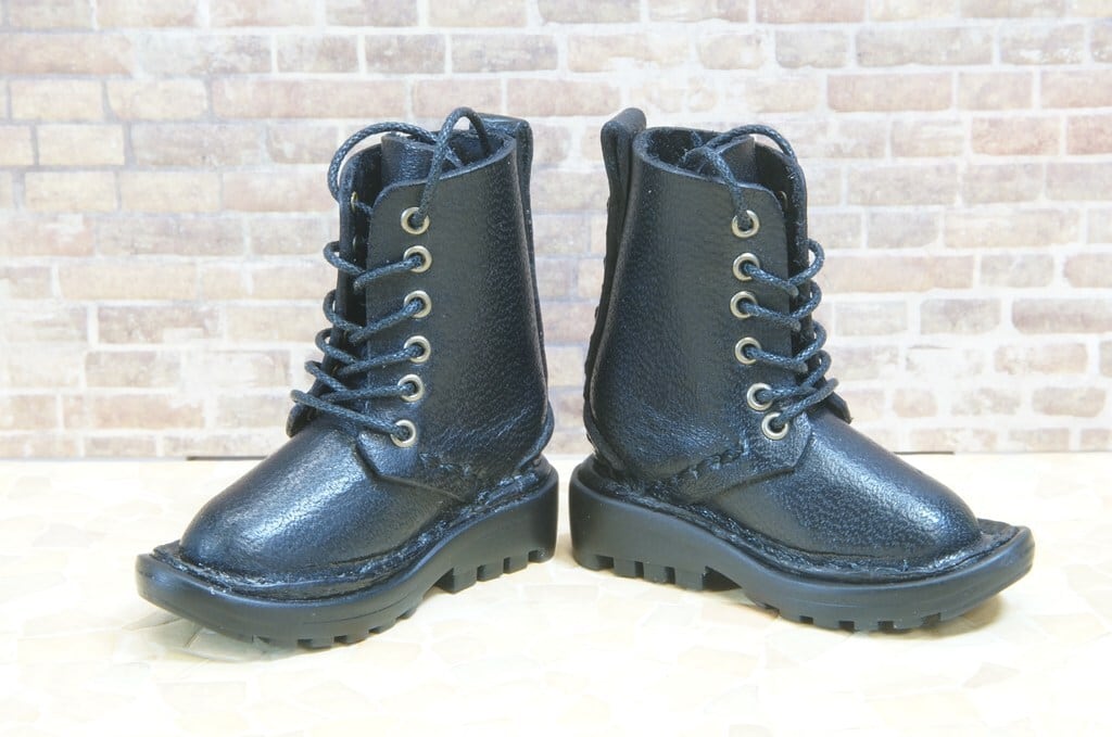 コピー:本革:ドールシューズ/セミロングブーツ/ブラック/オビツ30ジャストフィット/ブロックパターン靴底
