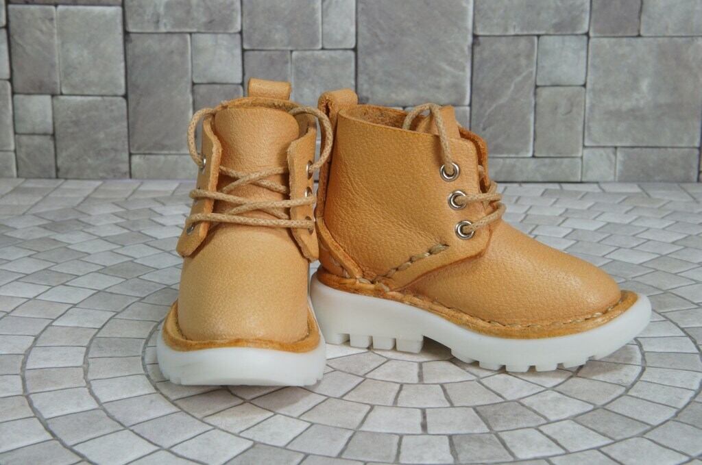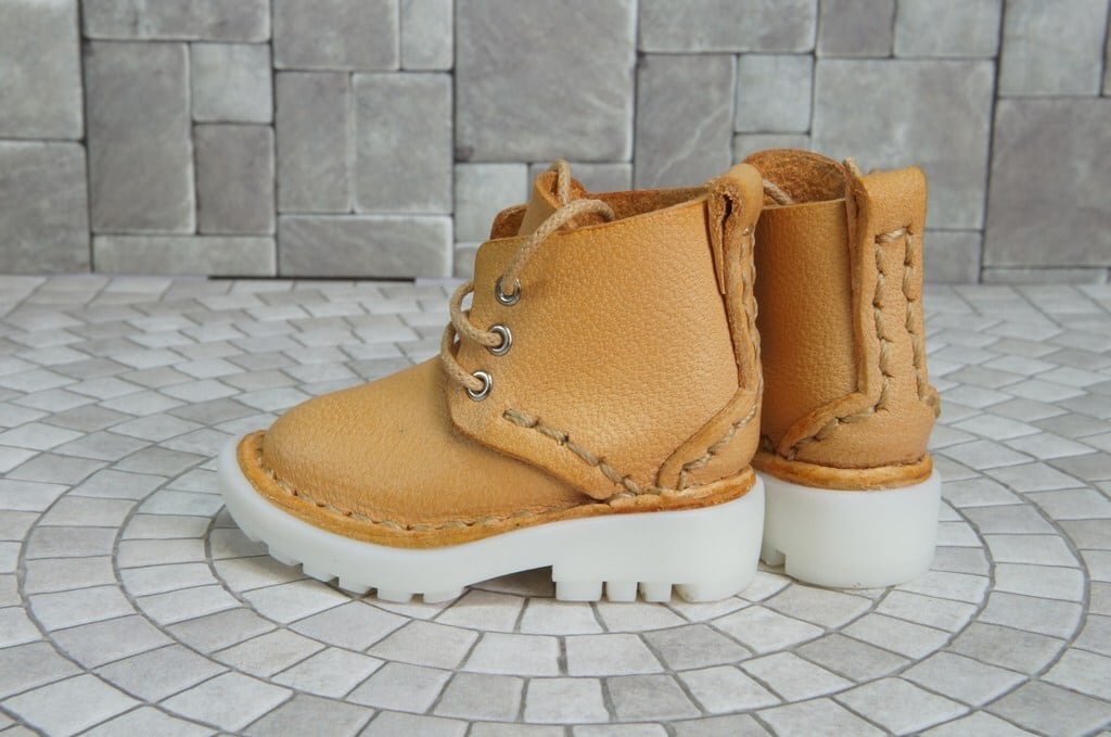 本革:ドールシューズ/ショートブーツ/アプリコット/オビツ30ジャストフィット/ブロックパターン靴底