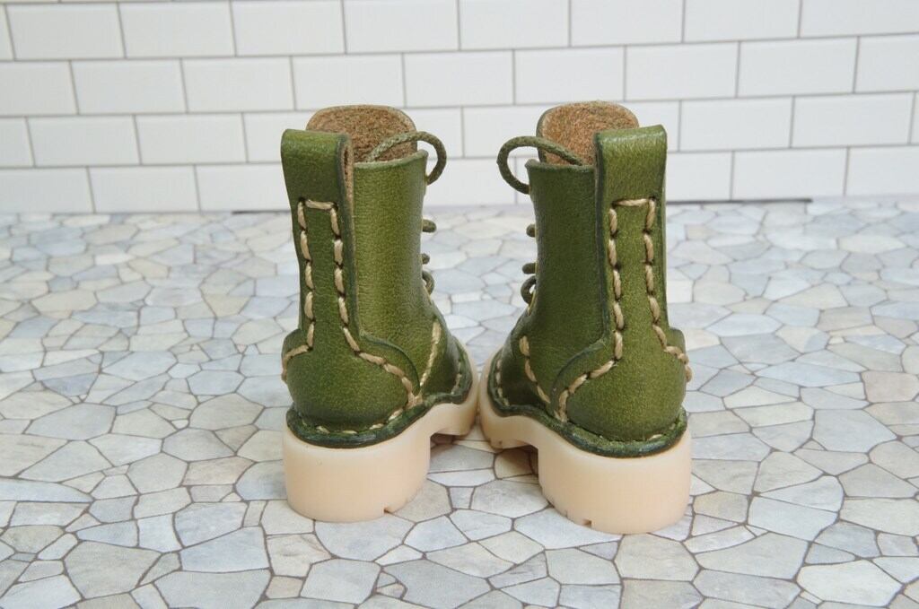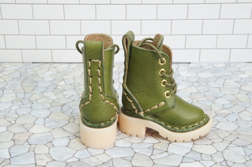 本革:1/6ドールシューズ/セミロングブーツ/ライム/オビツ24・ブライス・リカちゃん/ブロックパターン靴底