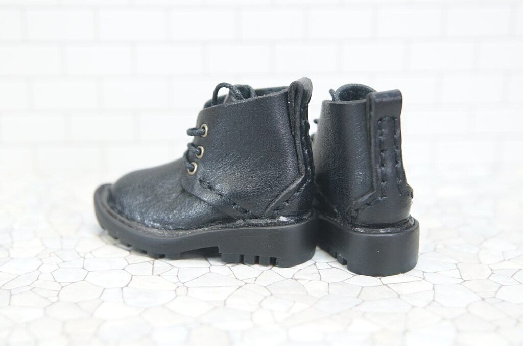 本革:ドールシューズ/ショートブーツ/ブラック/オビツ30ジャストフィット/ブロックパターン靴底