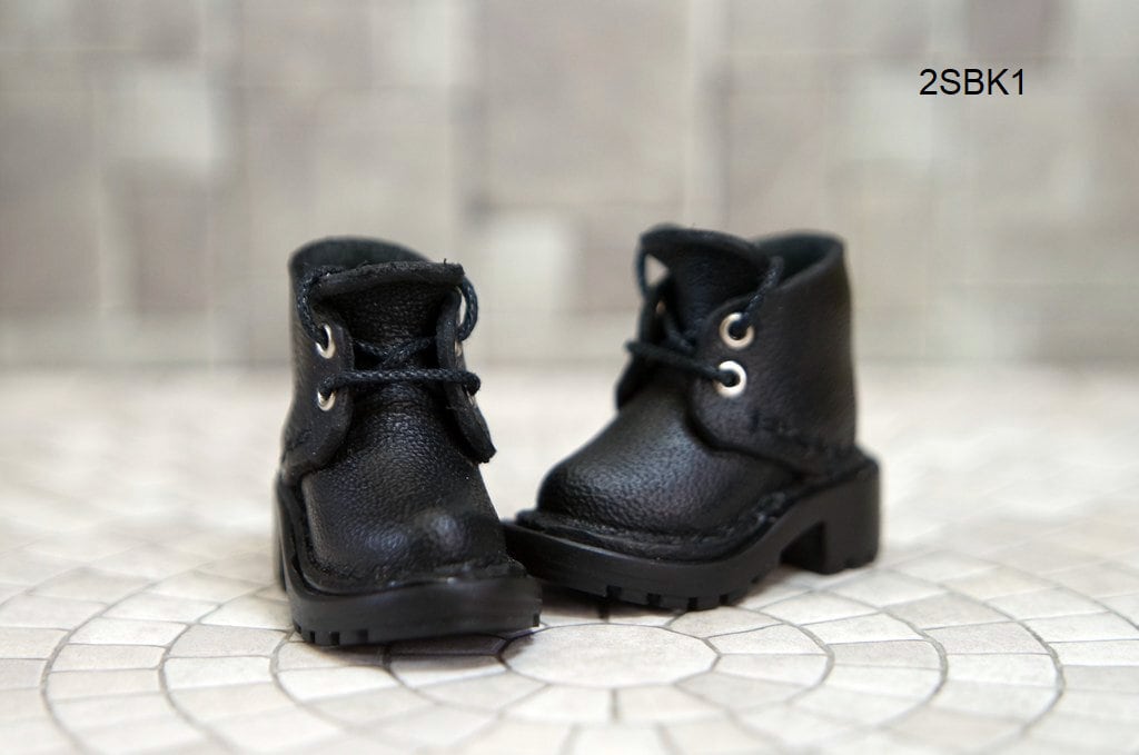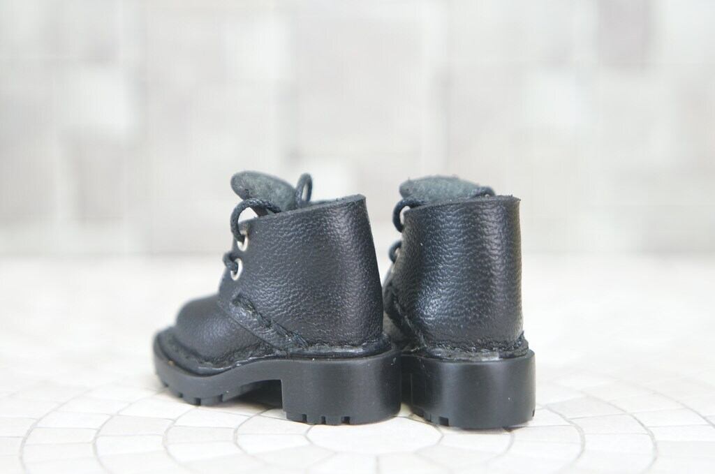 本革:1/6ドールシューズ/ショートブーツ/ブラック/オビツ24・ブライス・リカちゃん/ブロックパターン靴底