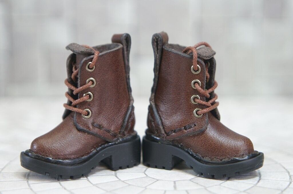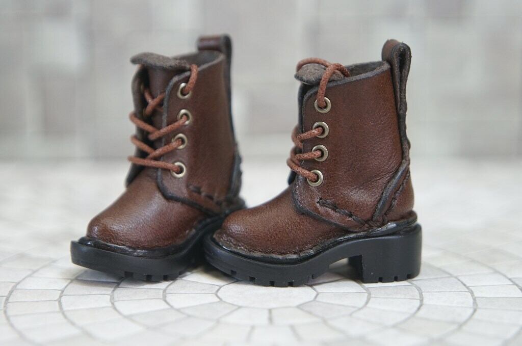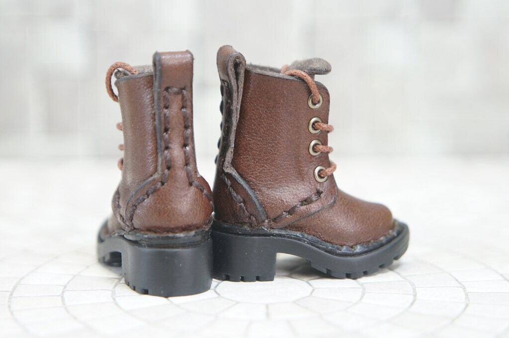 本革:1/6ドールシューズ/セミロングブーツ/ダークブラウン/オビツ24・ブライス・リカちゃん/ブロックパターン靴底