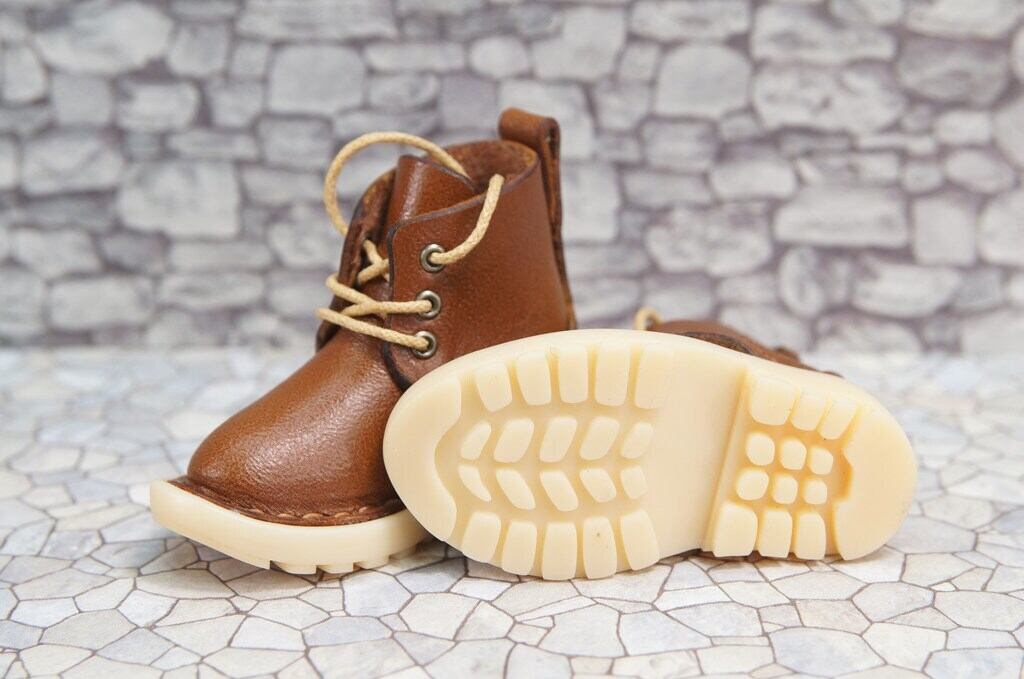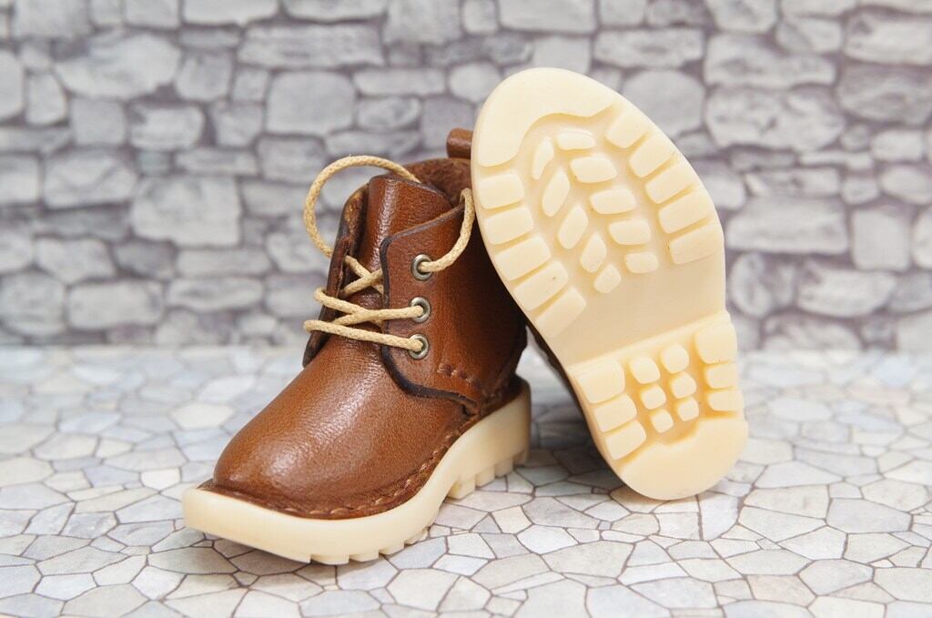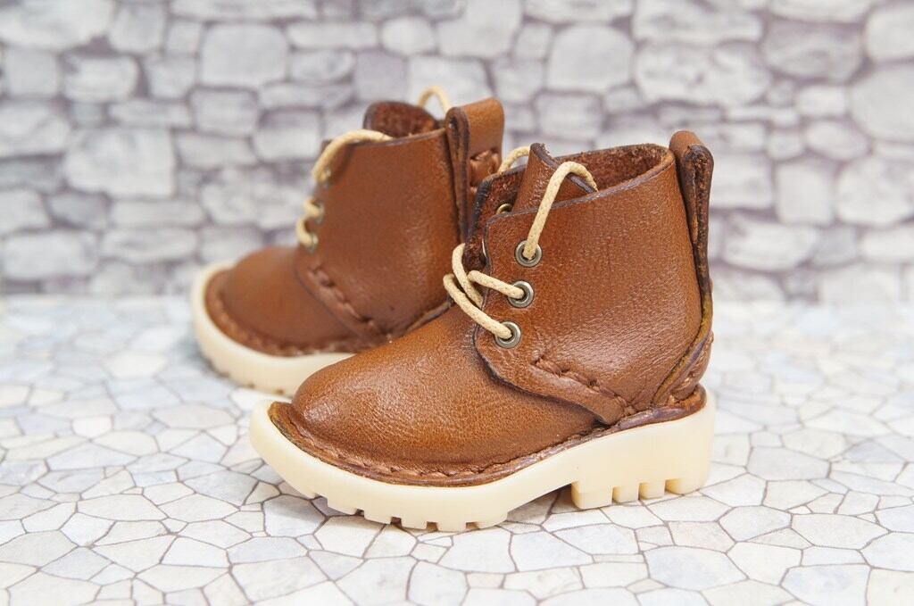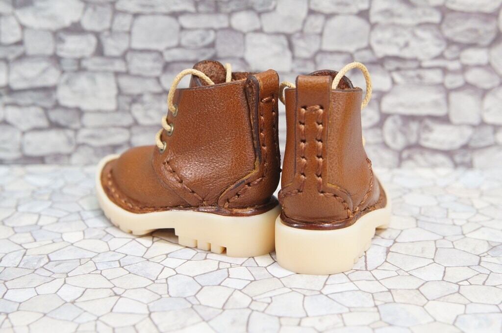 本革:ドールシューズ/ショートブーツ/チョコレート/オビツ30ジャストフィット/ブロックパターン靴底