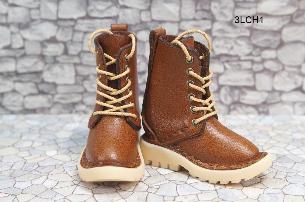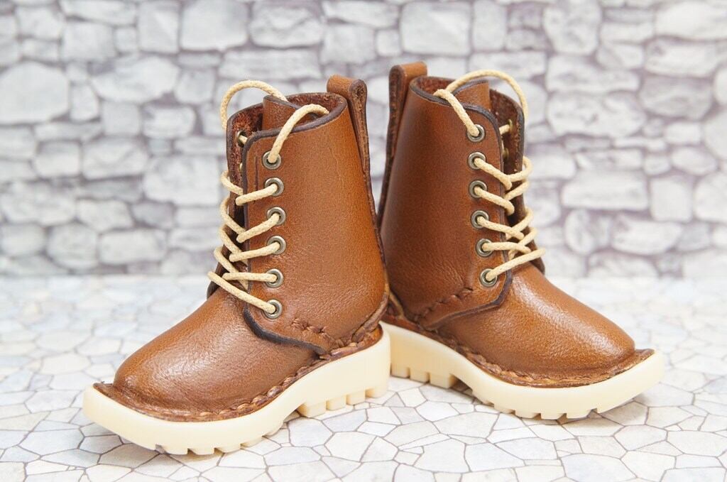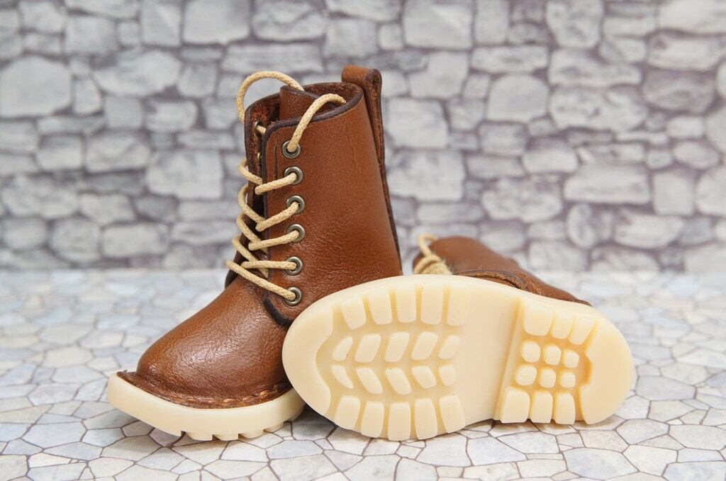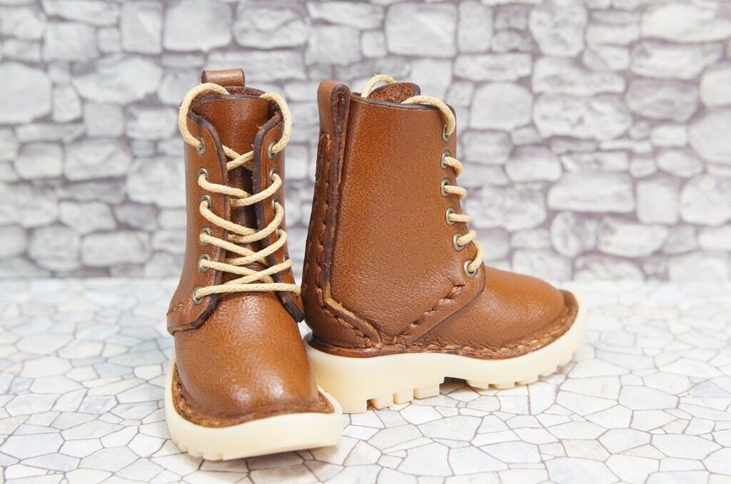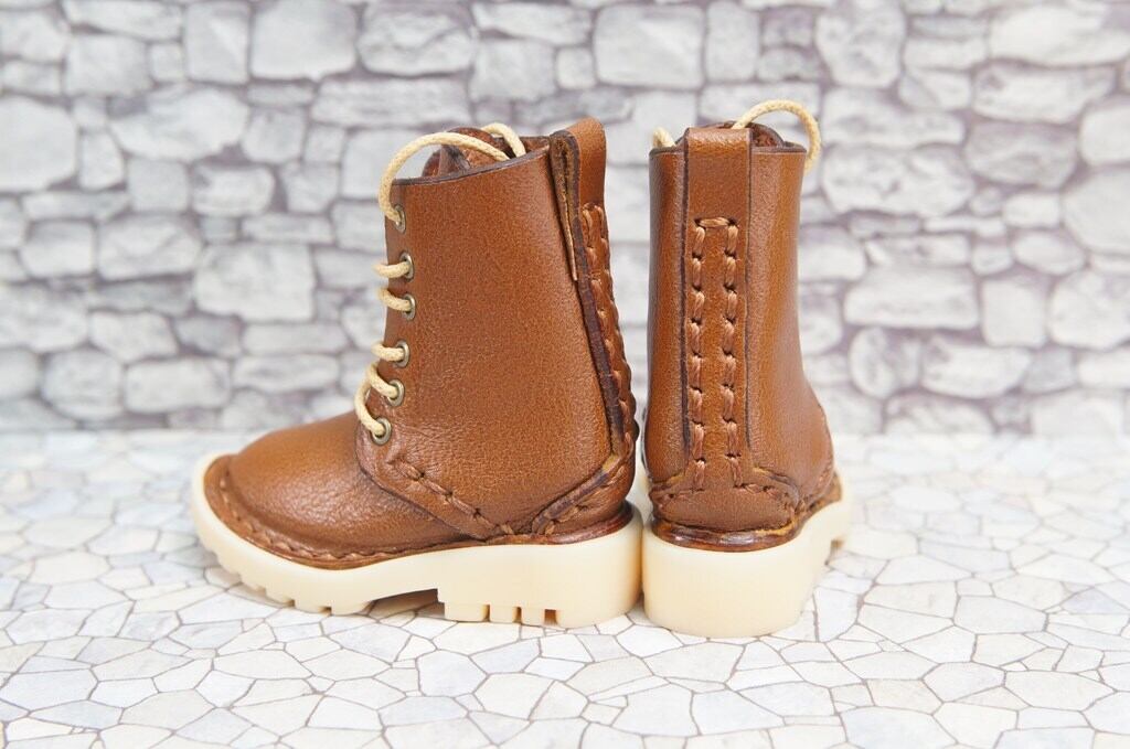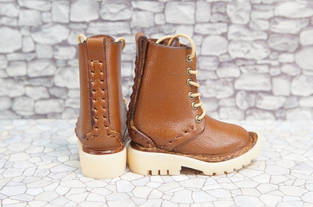 本革:ドールシューズ/セミロングブーツ/チョコレート/オビツ30ジャストフィット/ブロックパターン靴底