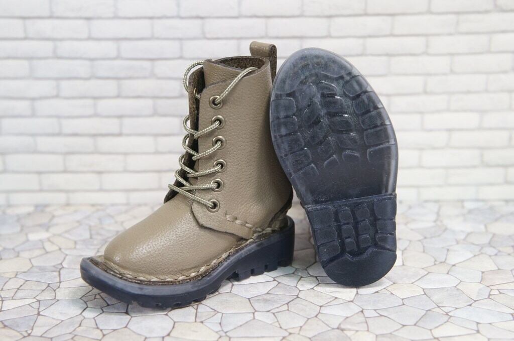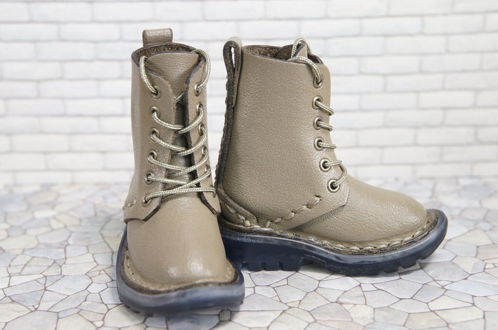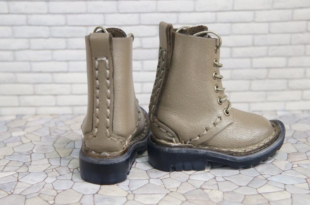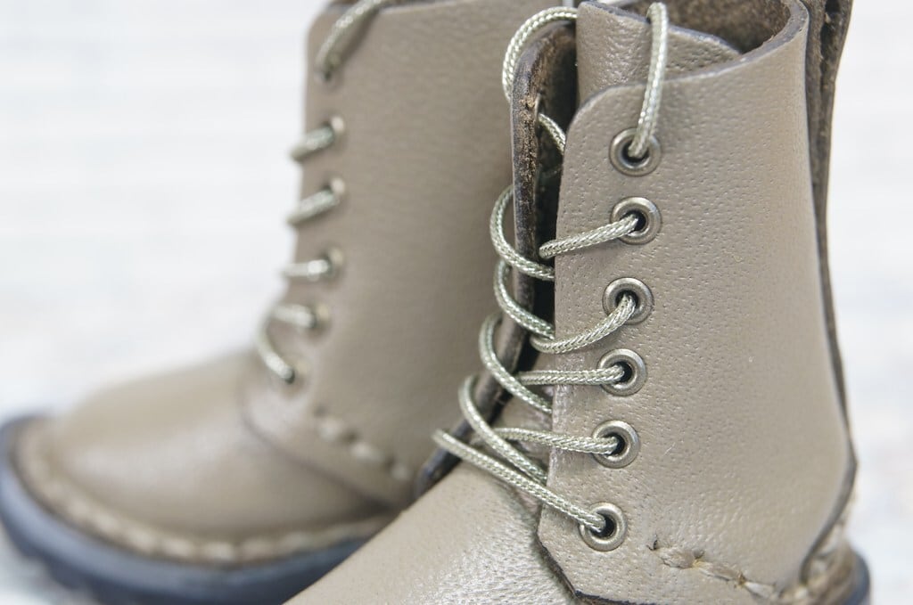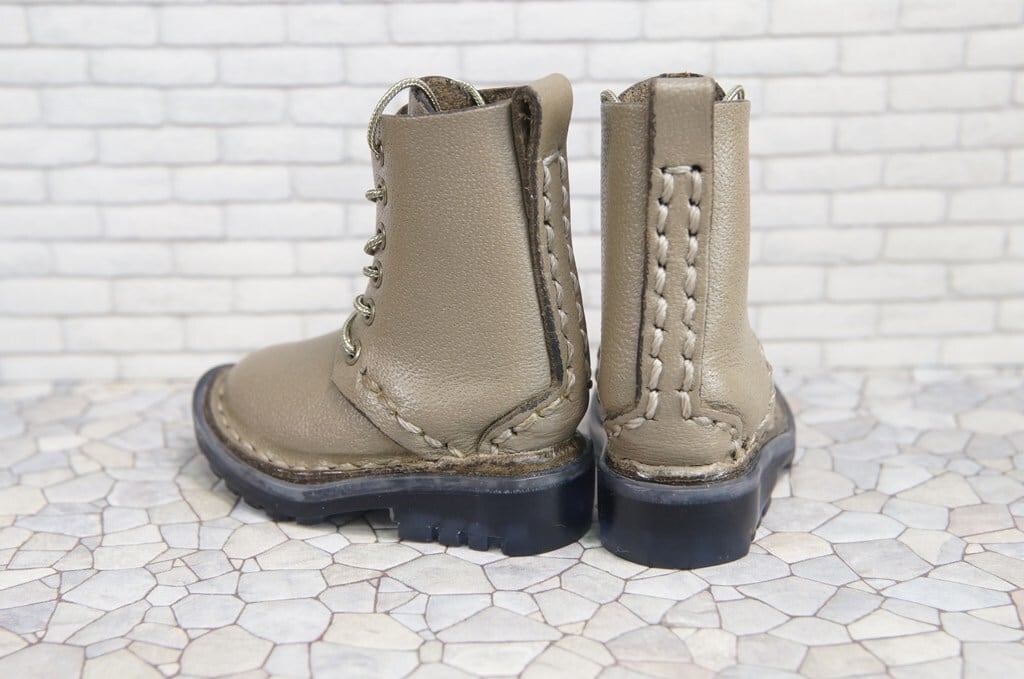 本革:ドールシューズ/セミロングブーツ/グレー/オビツ30ジャストフィット/ブロックパターン靴底/ステンレスコード