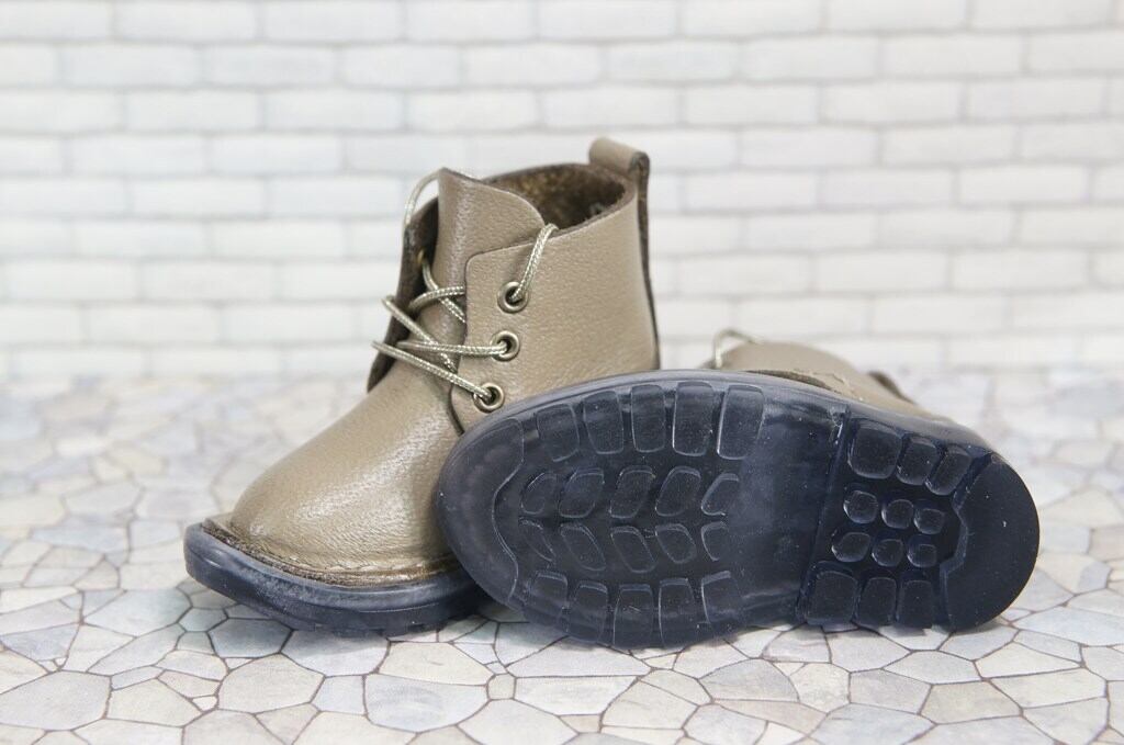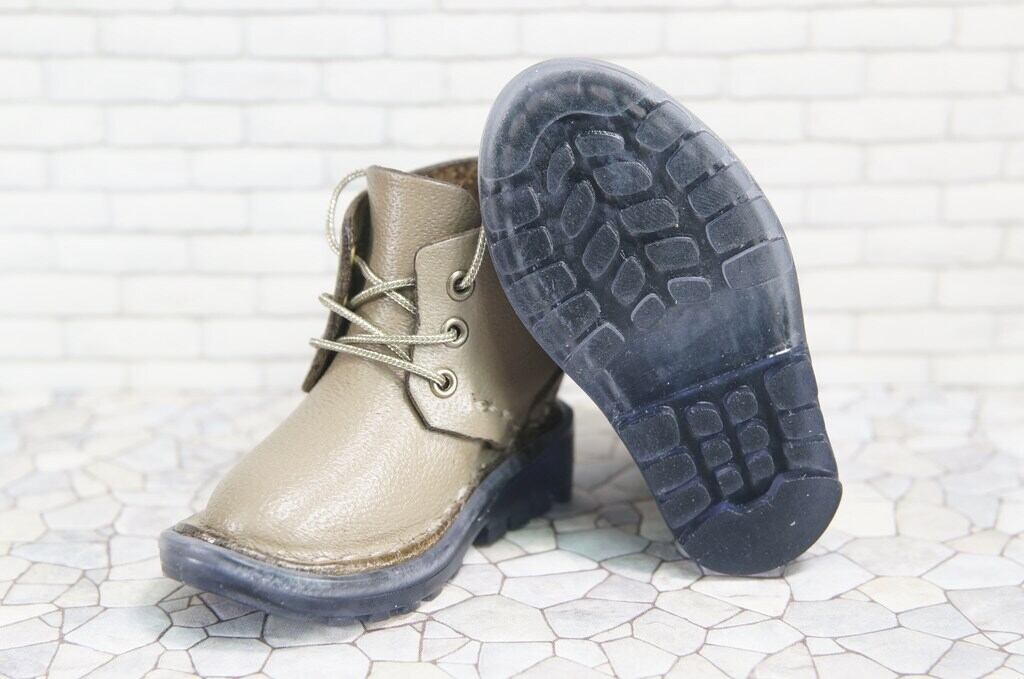 本革:ドールシューズ/ショートブーツ/グレー/オビツ30ジャストフィット/ブロックパターン靴底/ステンレスコード
